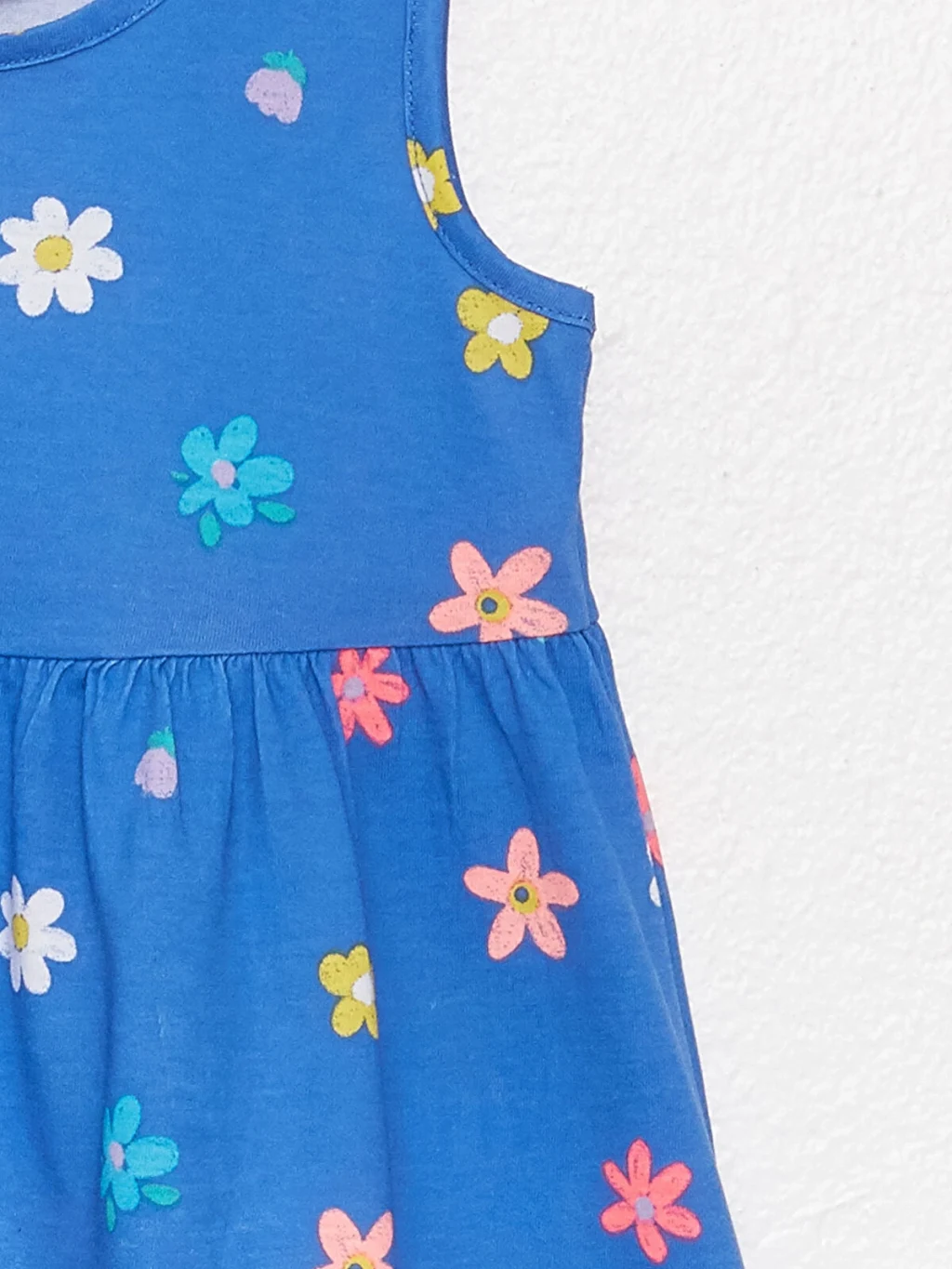 %100 pamuklu kumaştan, nefes alan dokusuyla konfor sağlayan kız bebek elbise modeli renkleri ve desenleri ile enerjik bir görünüme sahip. Bisiklet yakalı, kolsuz elbise sıcak havalarda nemi emen dokusuyla hassas bebek cildini ferahlatır.