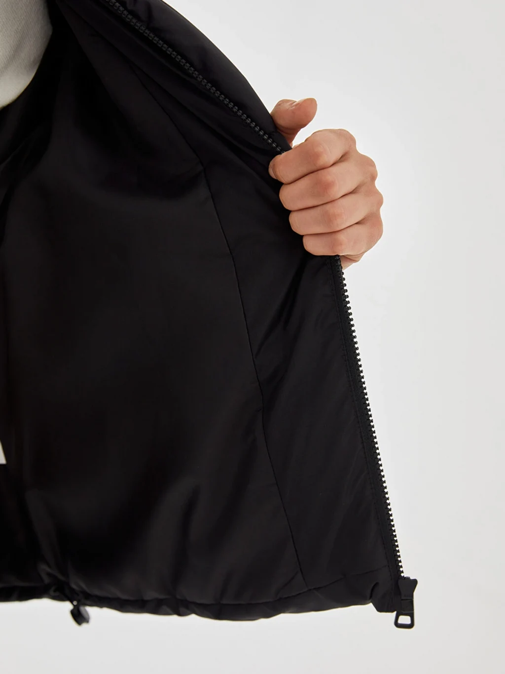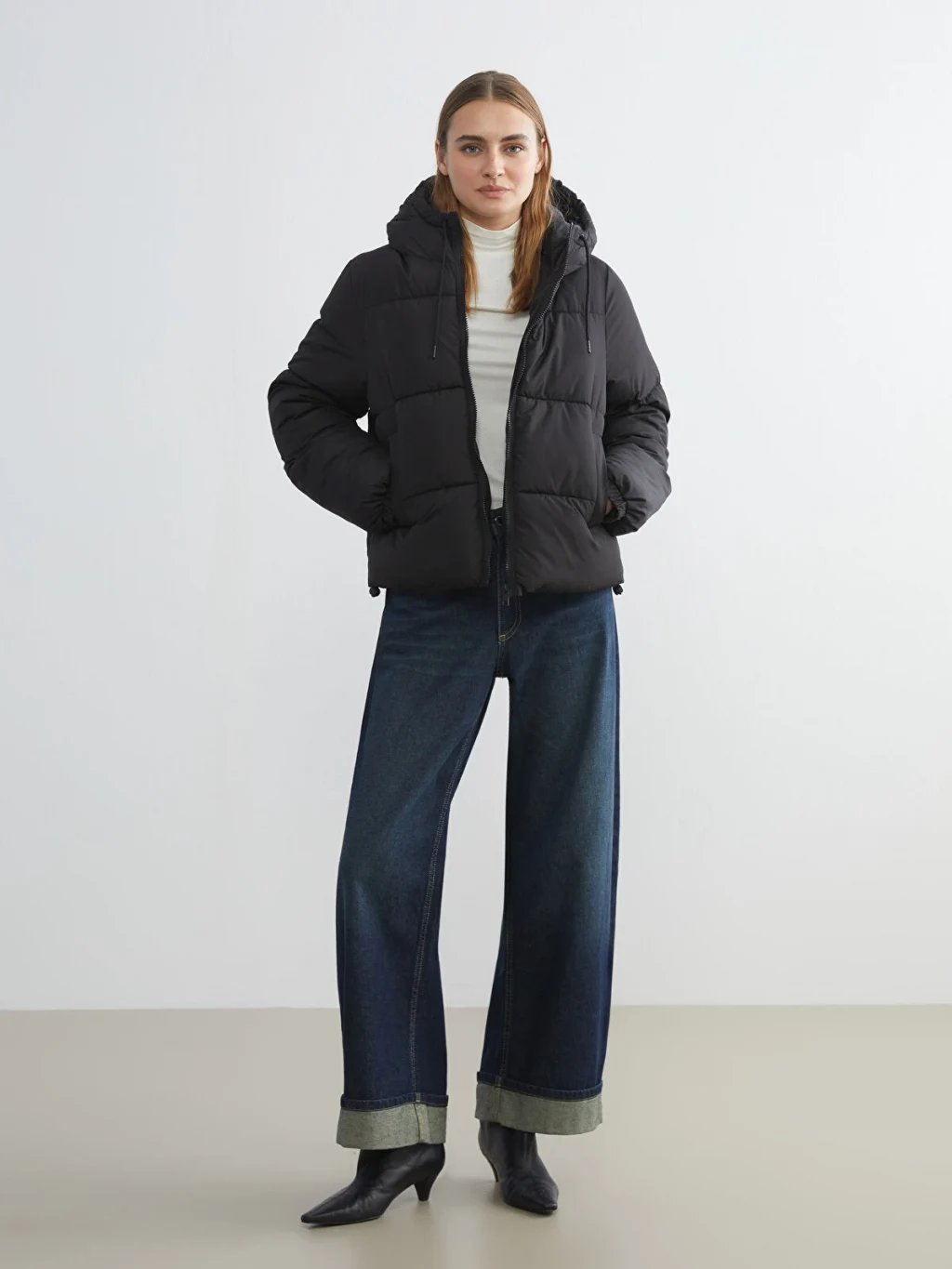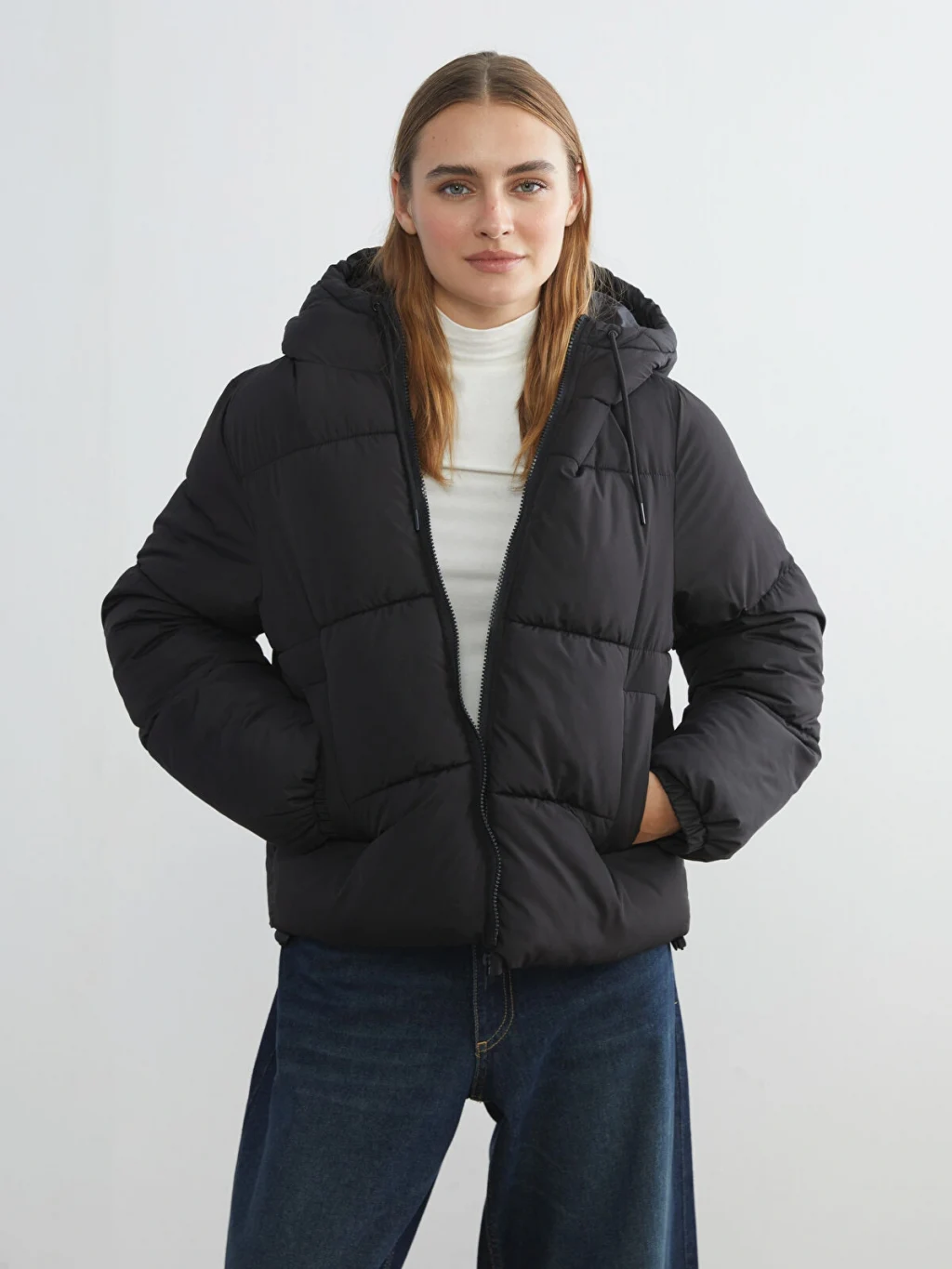 Sabit kapüşonlu ve uzun kollu kadın şişme mont, önden fermuar kapamalıdır. Yan cepleri ve büzgülü etek ucu bulunur. Sabit kapüşonlu ve dik yakalı kadın şişme mont, uzun kollu ve önden fermuar kapamalıdır. Yan cepleri ve etek ucu büzgüsü bulunur.