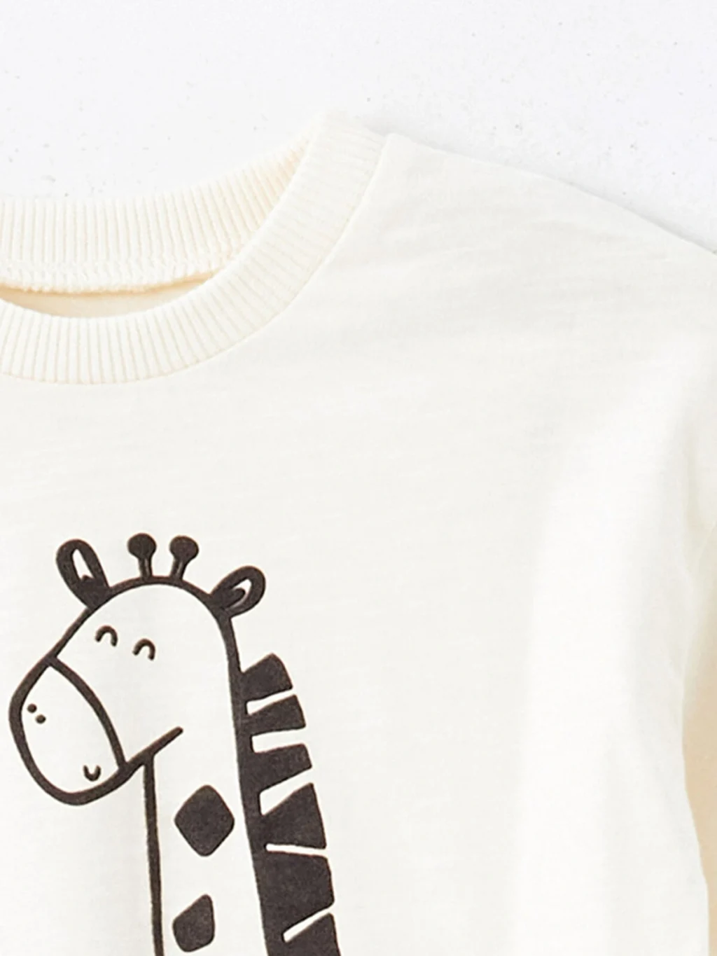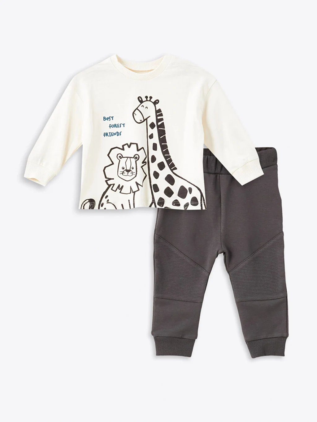 Pamuk karışımlı kumaşı sayesinde yumuşak bir dokunuş sunar ve bebeğinizin rahatlığını ön planda tutar. Uzun kollu tişört, şık baskı detayıyla stil katarken, esnek eşofman altı hareket özgürlüğü sağlar.