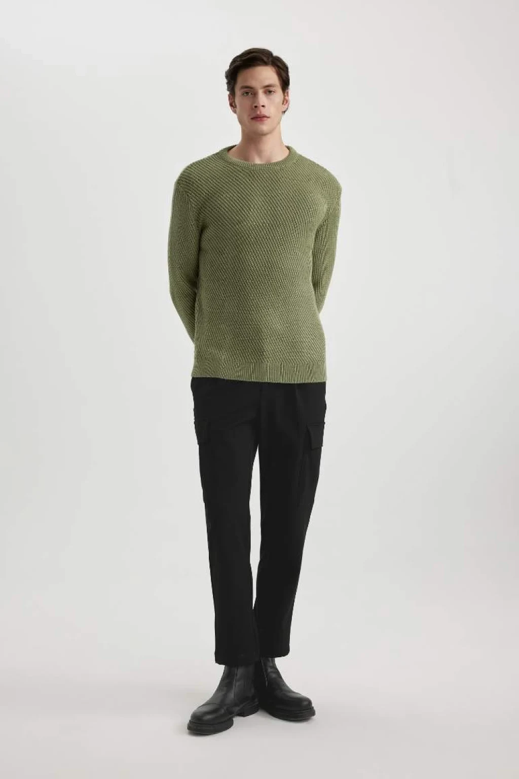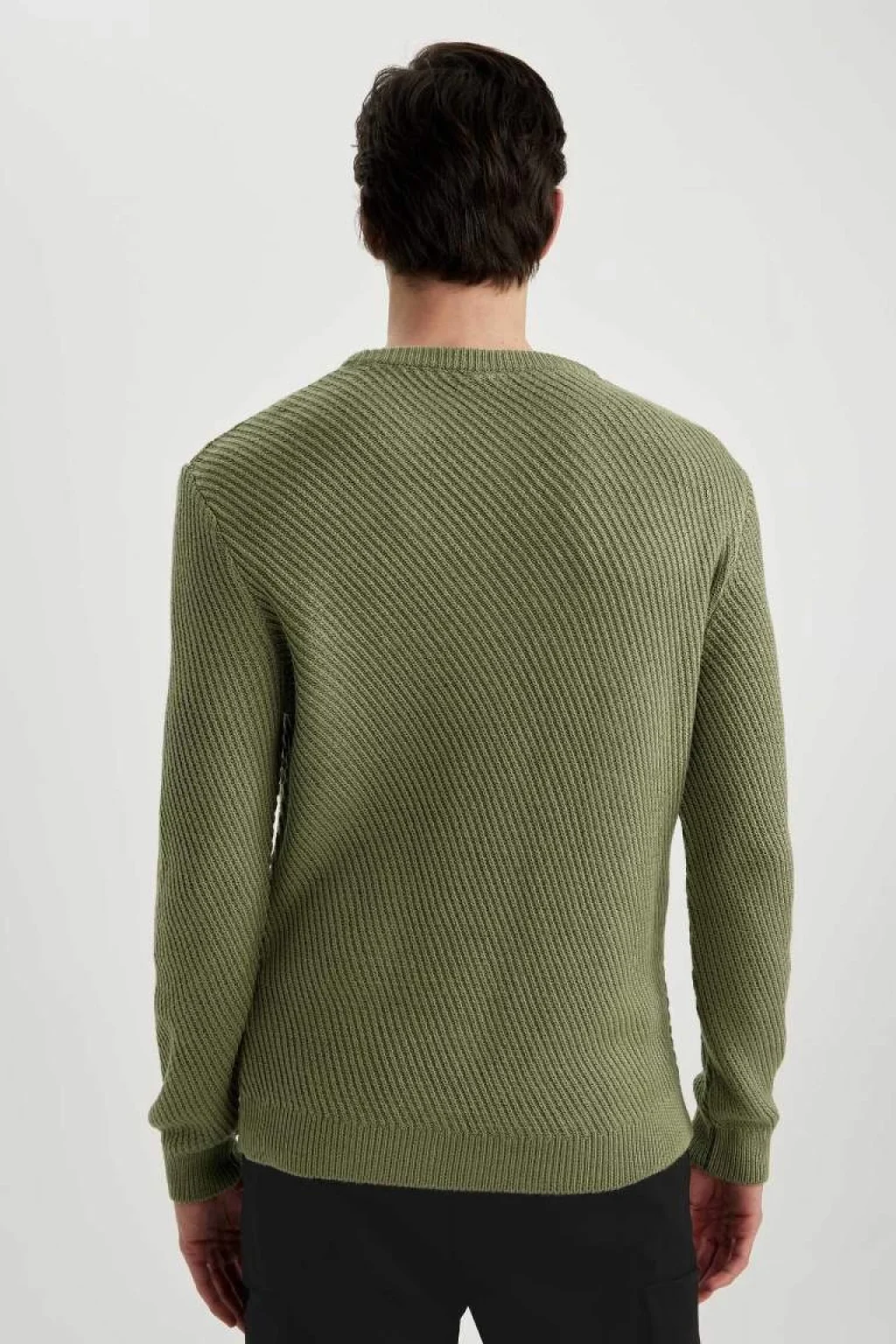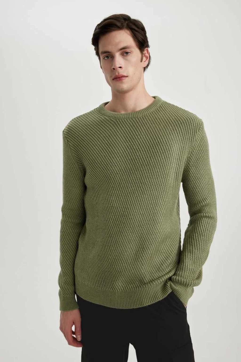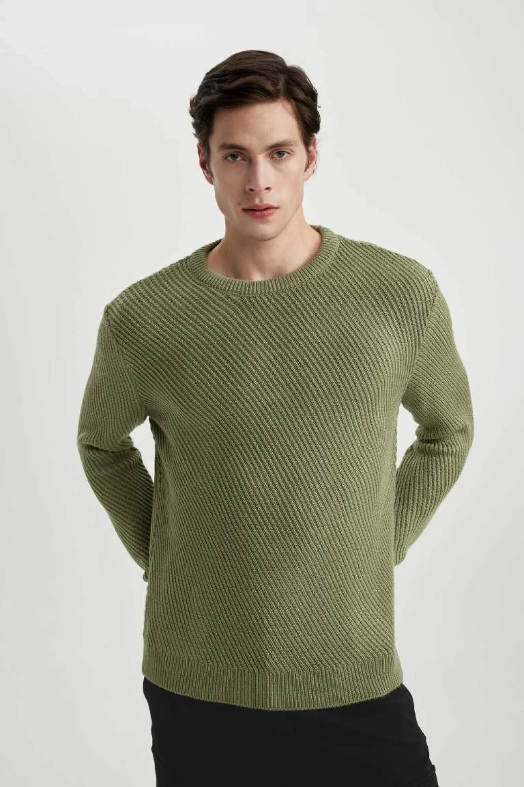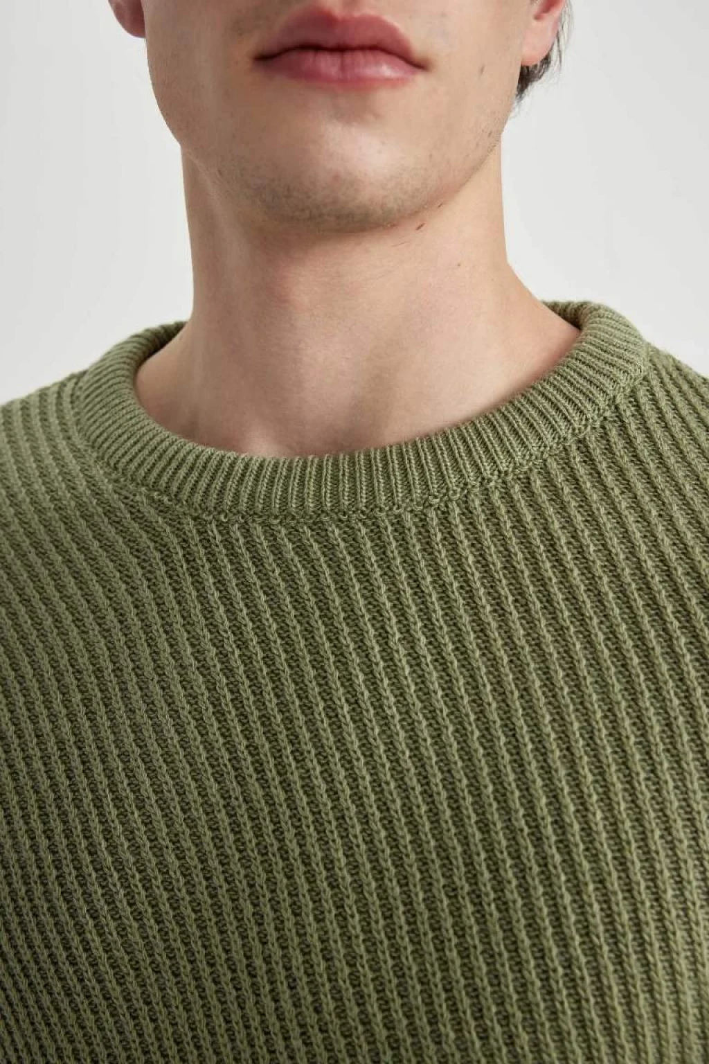 Defacto A8458AXKH381 Haki Standart Fit Bisiklet Yaka Triko Kazak