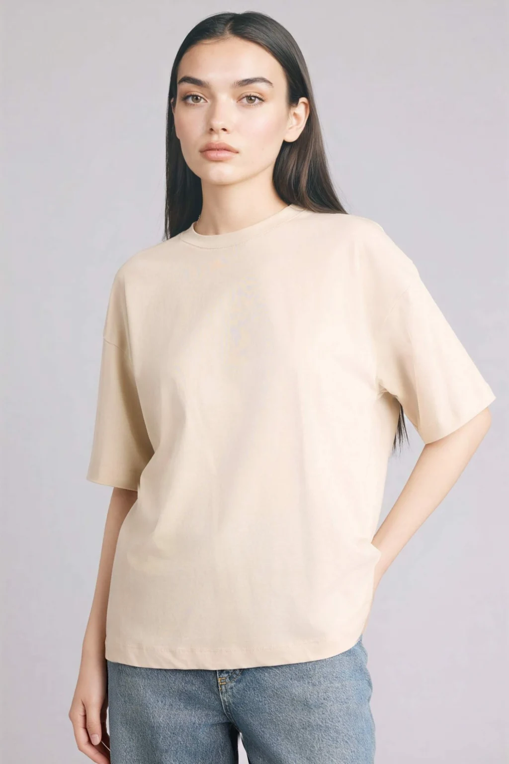 Defacto C0099AXBG757 Bej Oversıze Basıc Penye Tişört