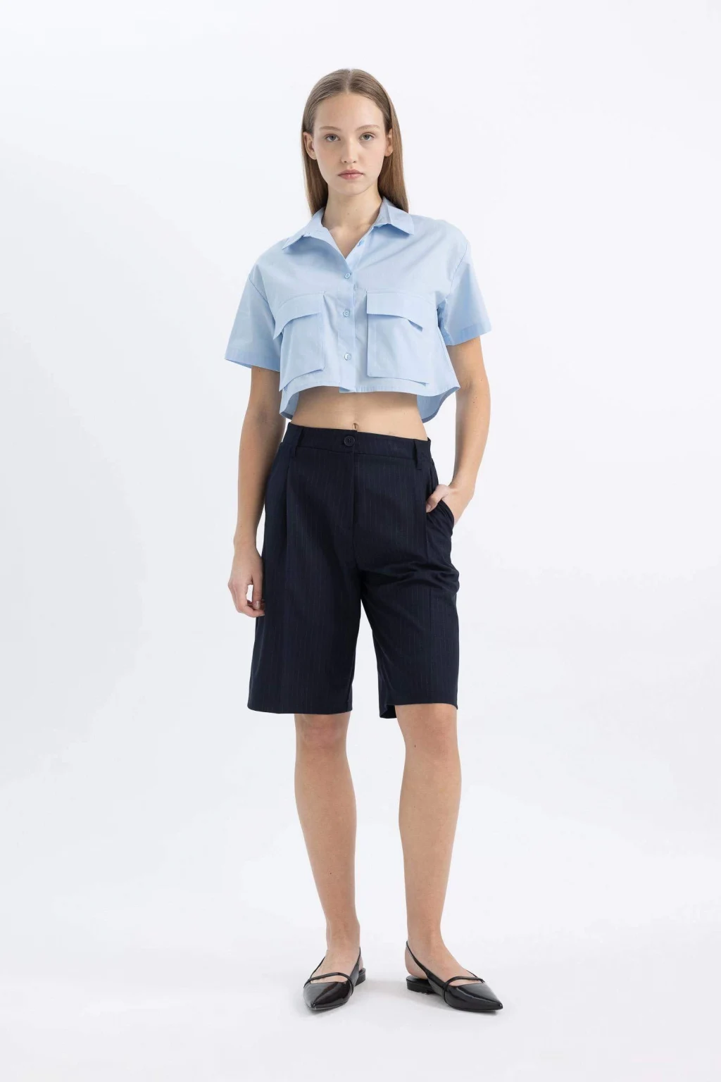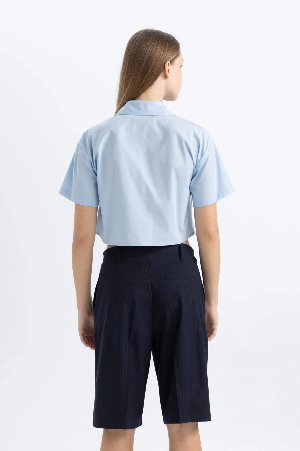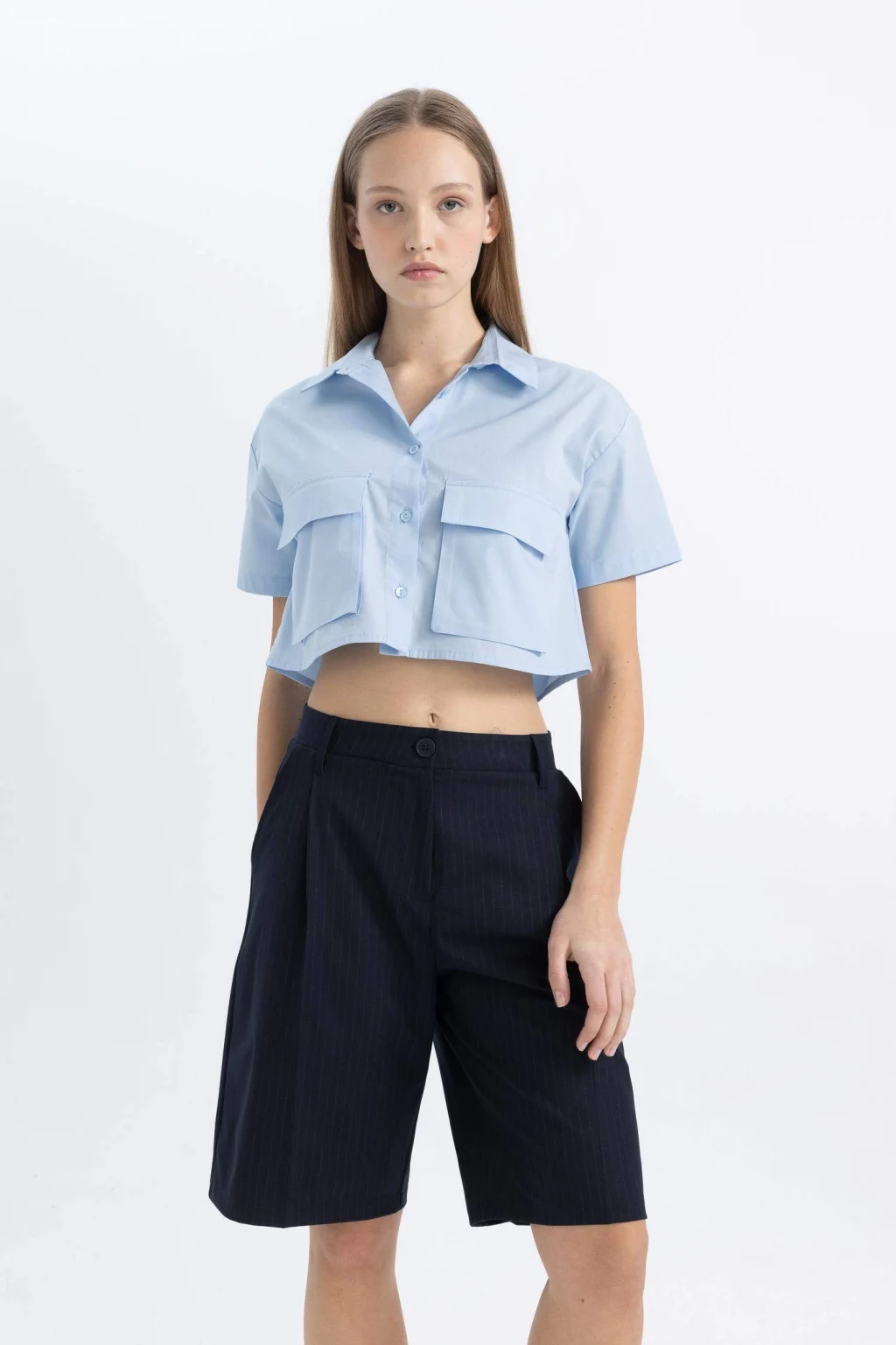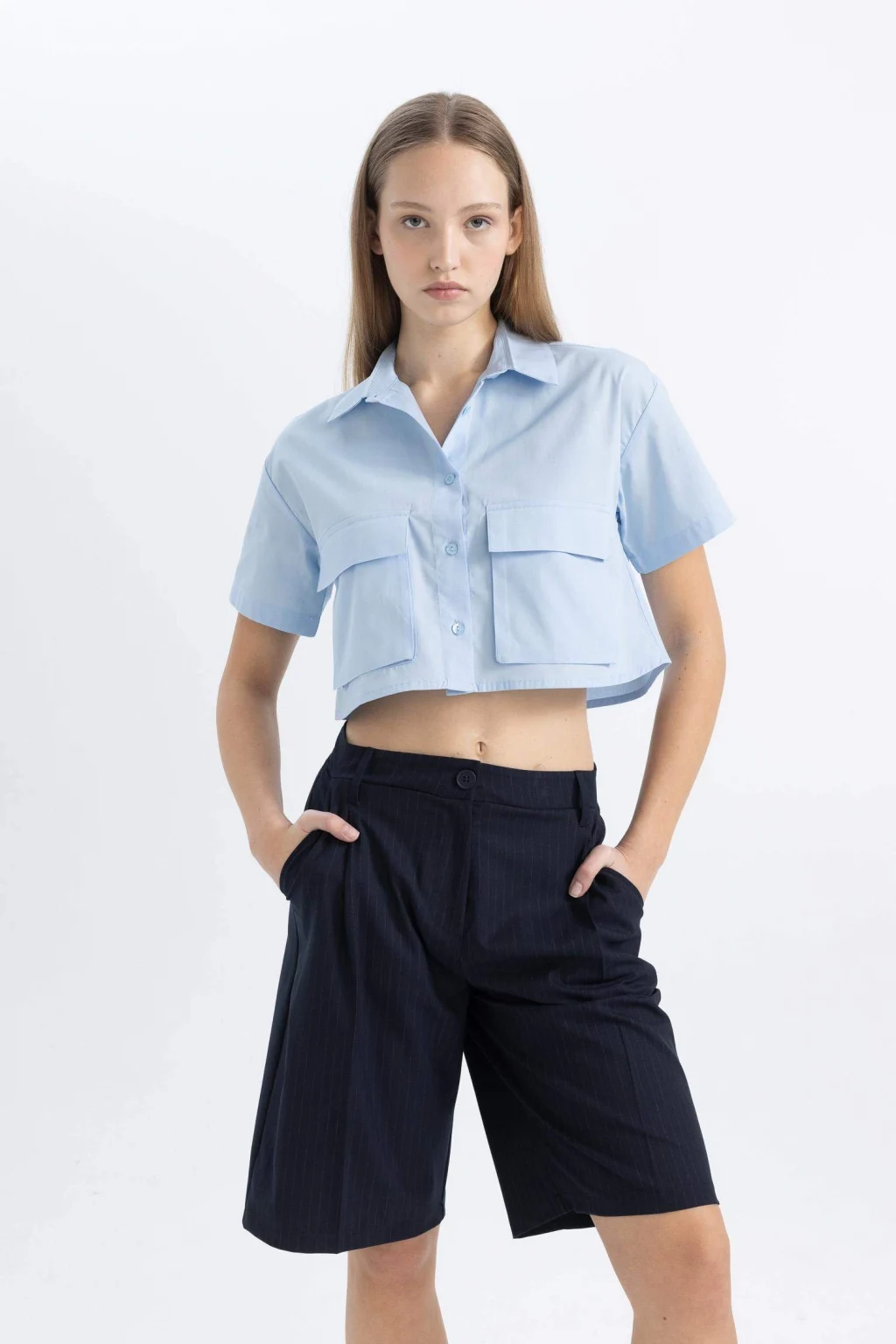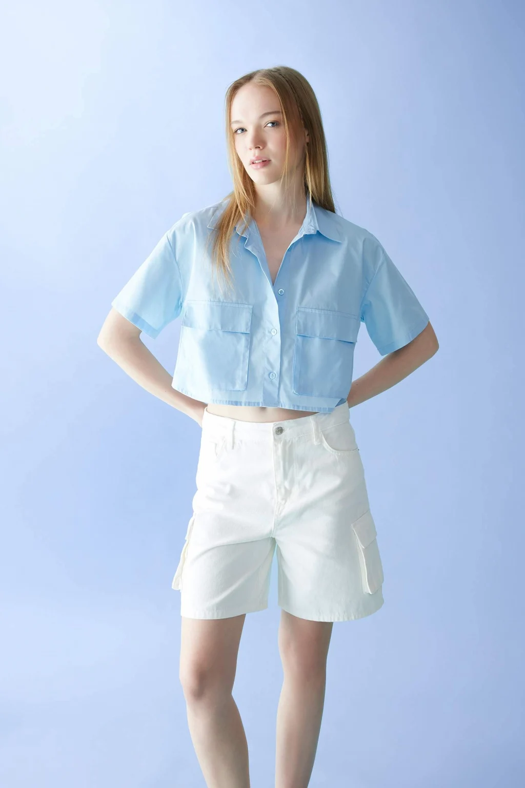 Defacto C7579 Beyaz Crop Gabardin Uzun Kollu Gömlek