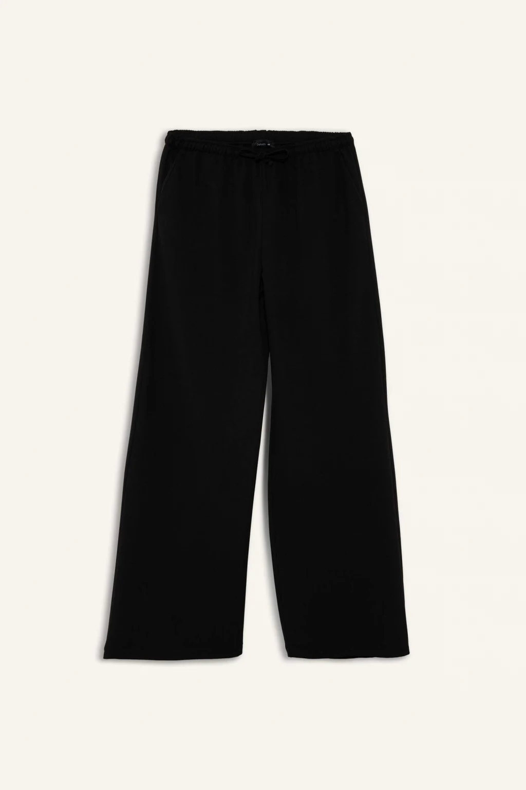 Wide Leg Kumaş Palazzo Pantolon, geniş ve bol paça kesimiyle rahatlık sunar. Beli lastikli ve bağcıklı tasarımı ile kişiye özel ayar imkanı sağlar, cepli detayıyla şıklığı ve fonksiyonelliği bir arada sunar.