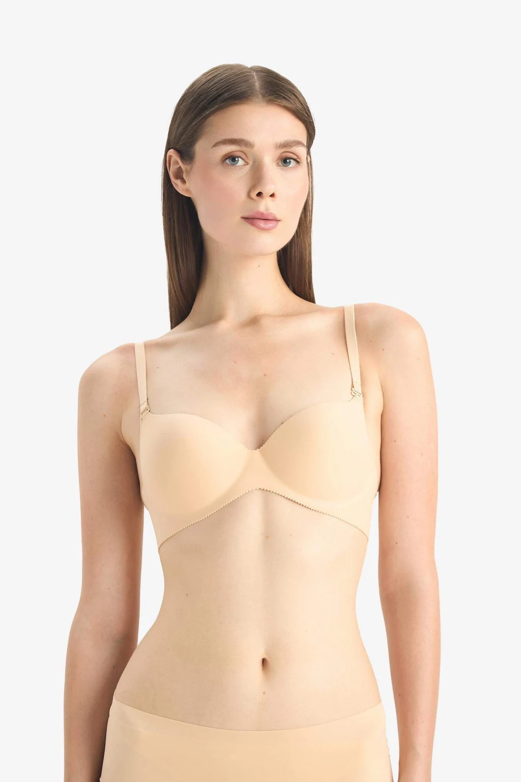 Yetişkin kadınlar için Fall in Love markasının yarım dolgulu bej T-Shirt Bra'sı. Temel çeşit içinde yer alan bu iç çamaşırı, tüm mevsimlerde kullanım için uygundur. Kadınlar için konfor ve şıklığı bir arada sunar. Kalıbıyla ve kalitesiyle öne çıkar.