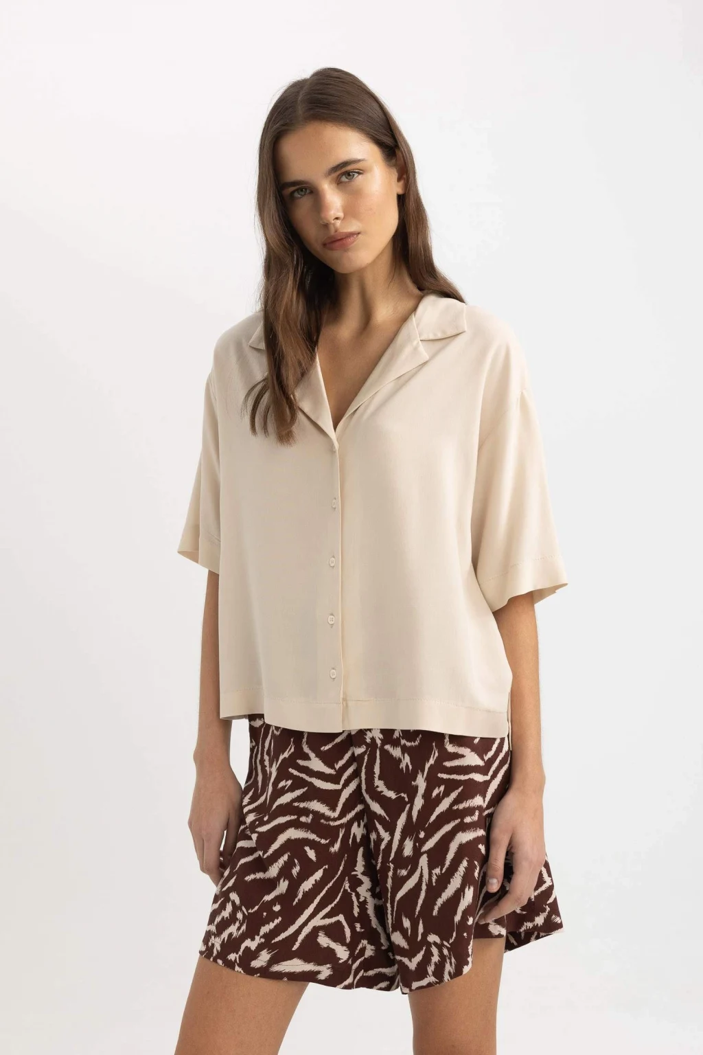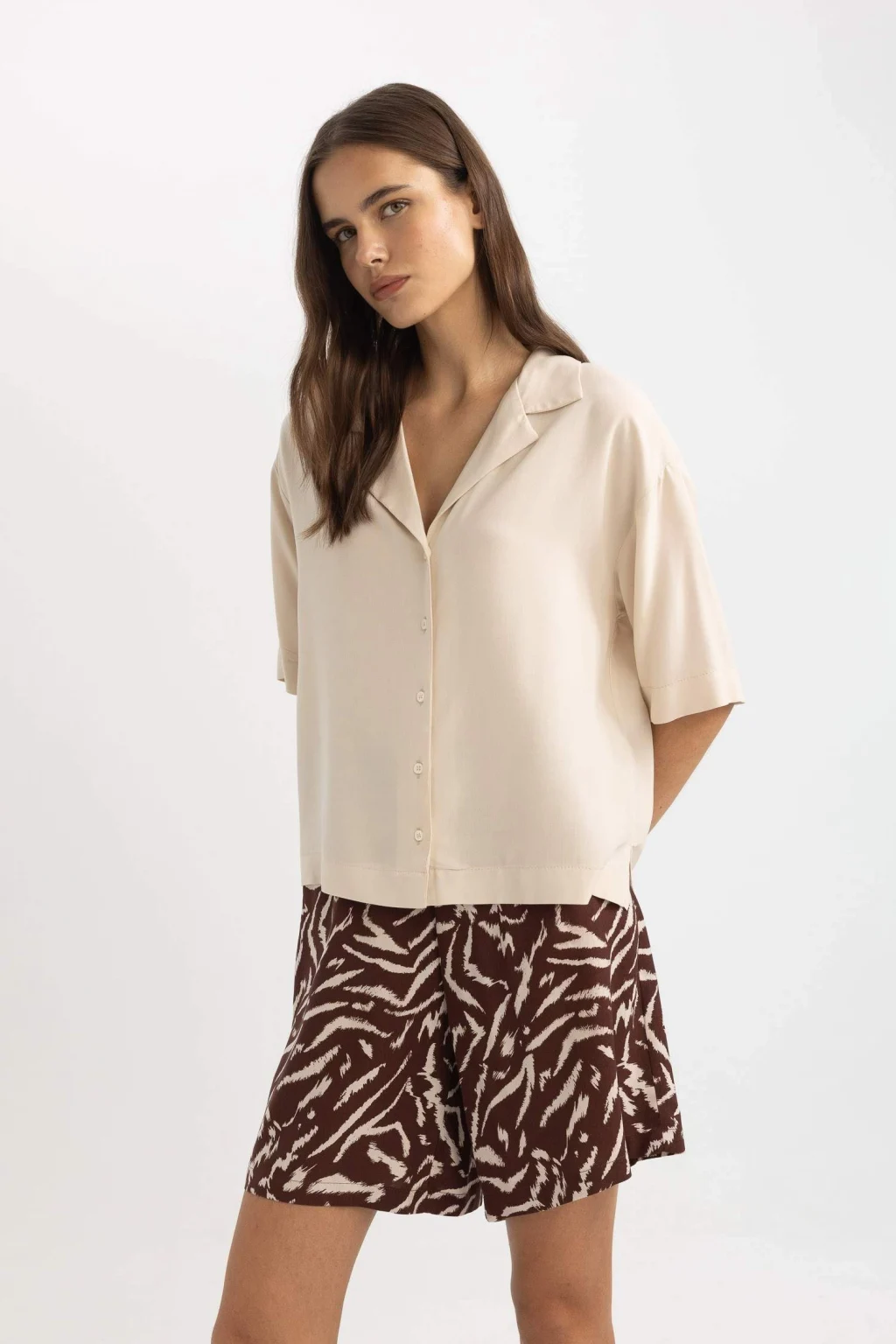 Klasik ve şık bir görünüm için ideal olan Boxy Fit Polo Yaka Kısa Kollu Gömlek, gardırobunuzun vazgeçilmezi olmaya aday. Rahat kesimi ve kaliteli kumaşıyla öne çıkan bu gömlek, tarzınıza şıklık katacak. Hem günlük kullanıma hem de özel günlerde tercih edebileceğiniz bir parça.