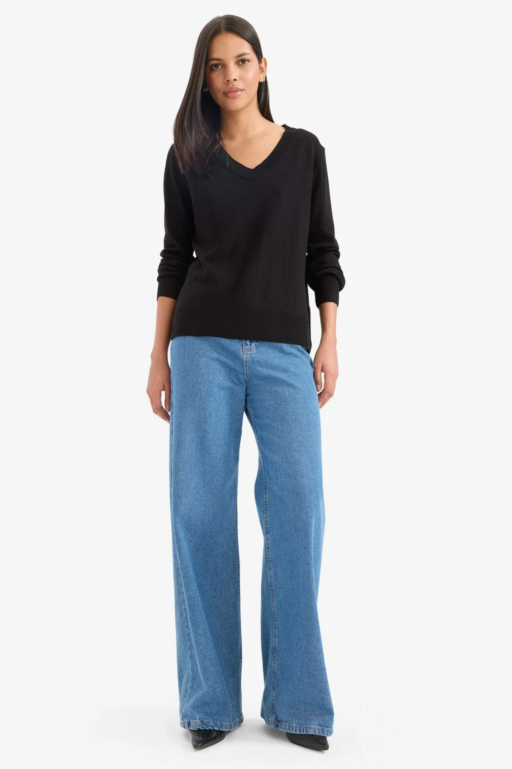 Relax Fit V Yaka Triko Kazak, bol kesimi ve yumuşak dokusuyla rahatlık sunar. V yaka tasarımıyla şıklığı bir arada taşıyan, günlük kombinlere kolayca uyum sağlayan bir parça.
