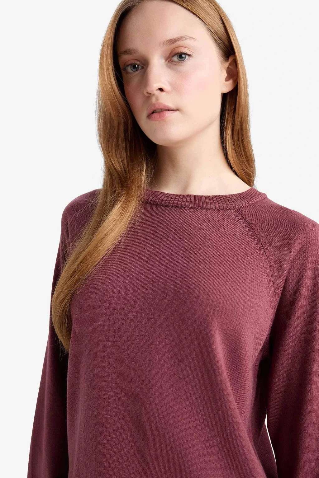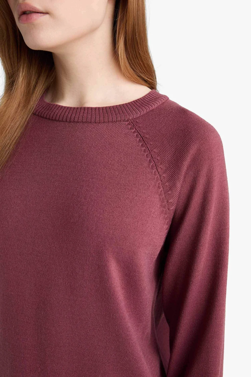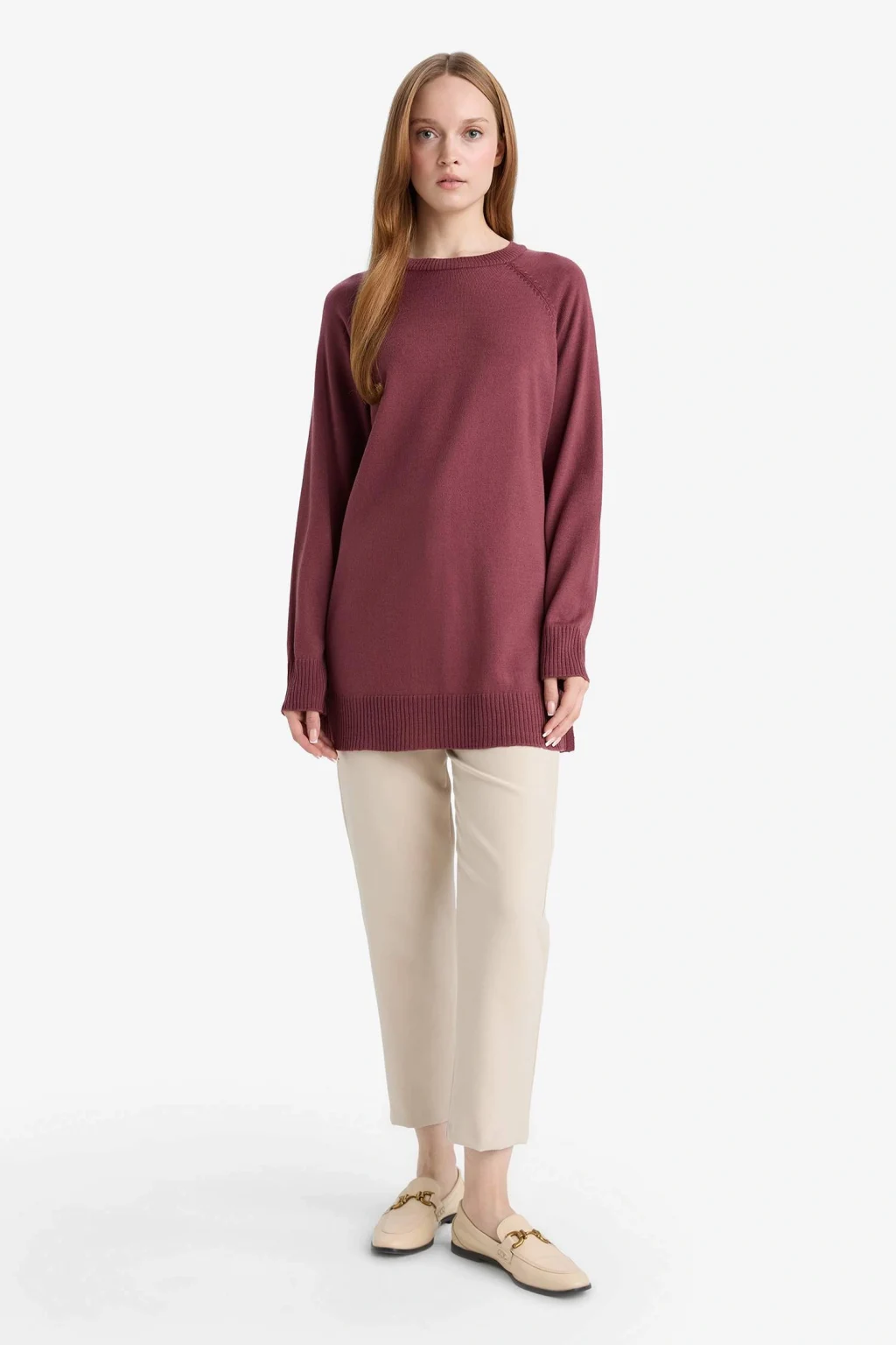 Defacto C4474AXBR350 Bordo Regular Fit Bisiklet Yaka Basic Düz Triko Kazak Tunik