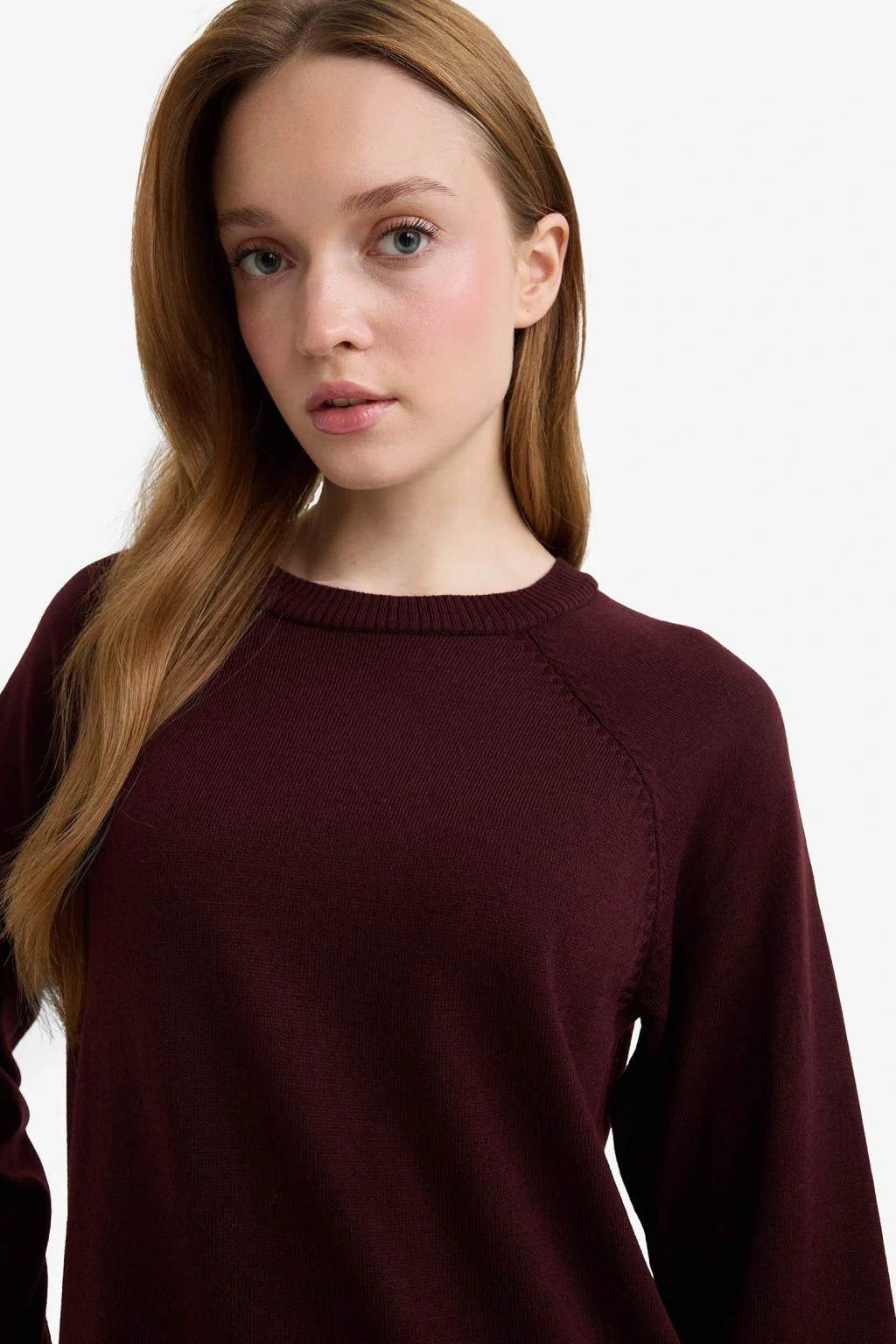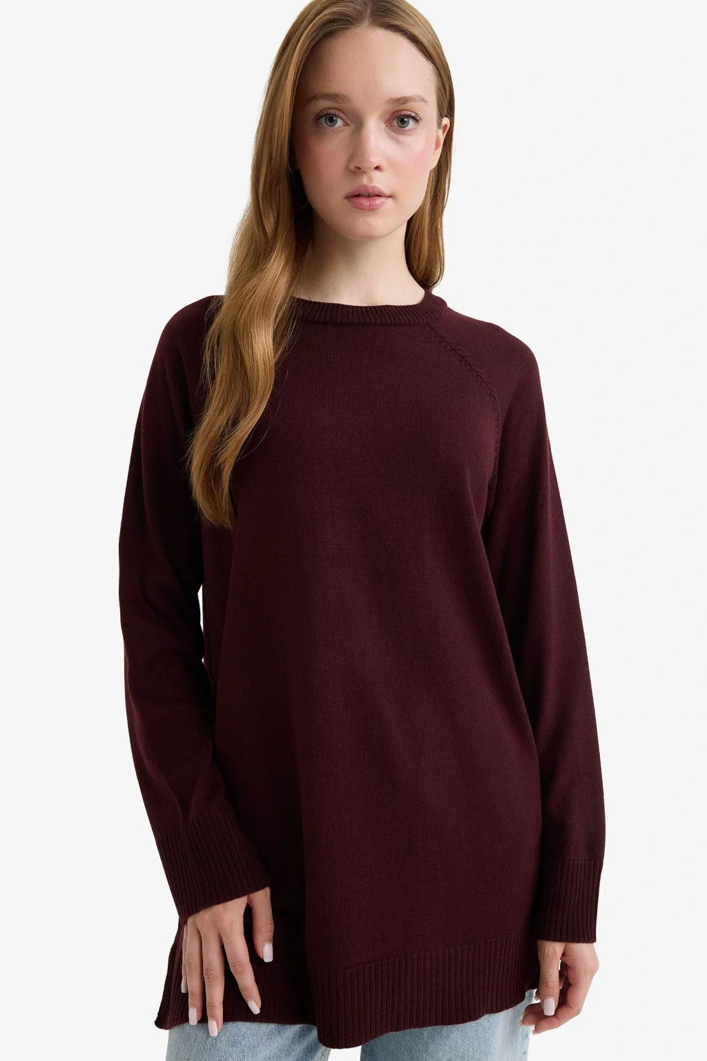 Defacto C4474AXBR174 Bordo Regular Fit Bisiklet Yaka Basic Düz Triko Kazak Tunik