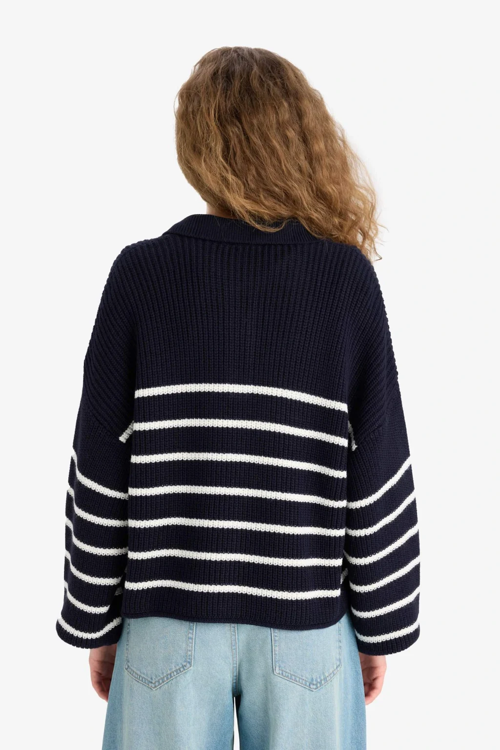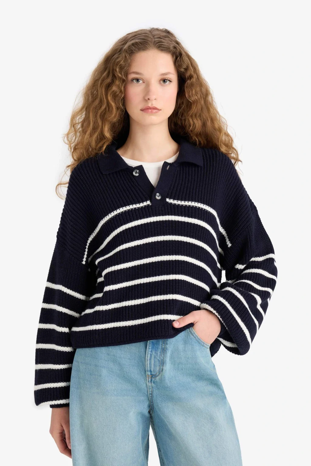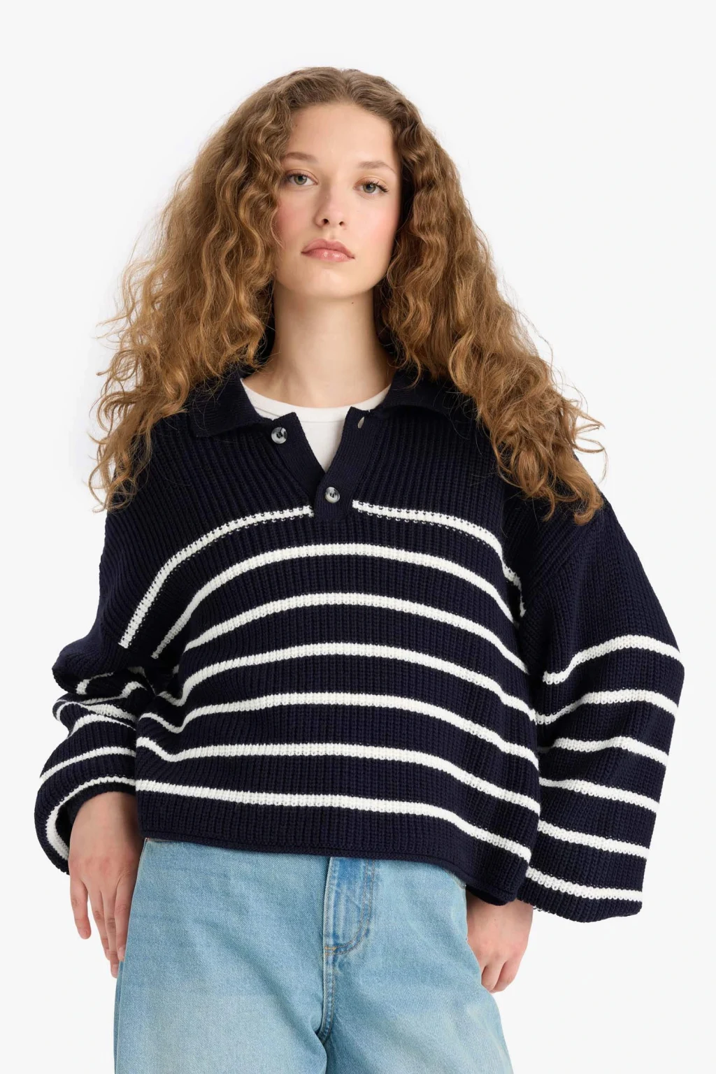 Relax fit kesimi ve polo yaka tasarımıyla dikkat çeken bu Coool triko kazak, şık çizgili deseniyle casual stilinize sofistike bir dokunuş katıyor. Yumuşak dokusuyla hem rahat hem zarif bir kullanım sunar.