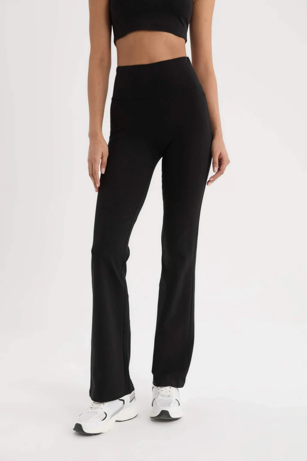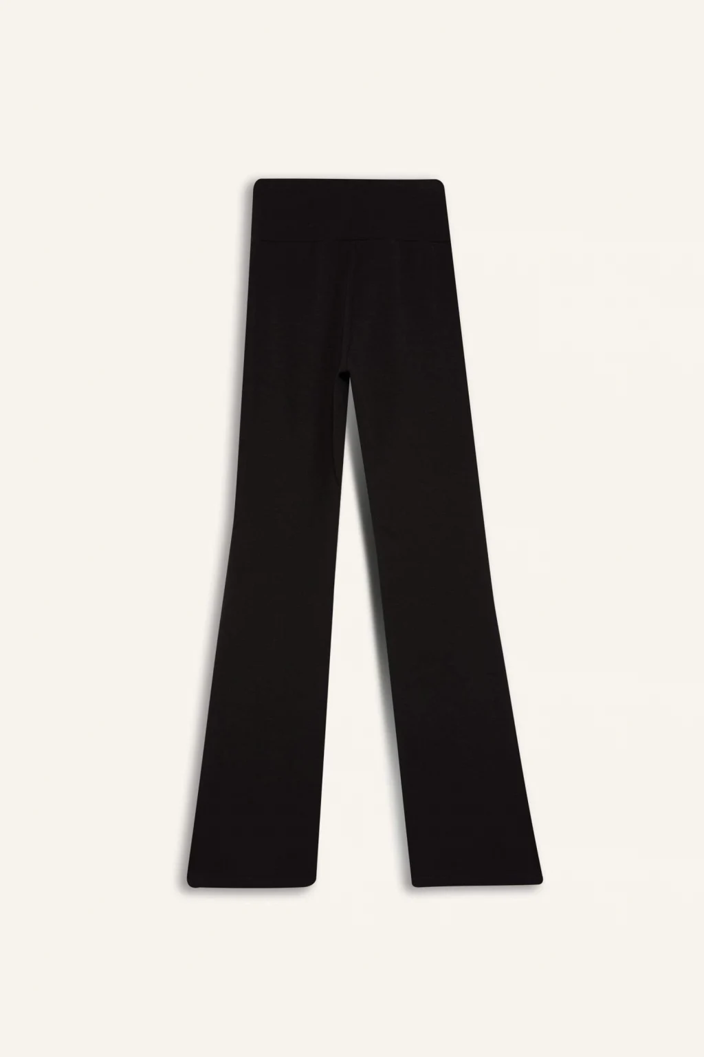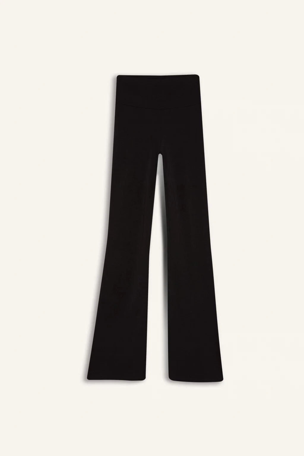 Pamuklu Set Flare Ticari Pantolon, siyah rengi ve beli saran flare fit kalıbıyla örme alt için ideal bir seçenektir. Günlük giyim için uygun olan bu pantolon, pamuk malzemeden üretilmiştir ve İlkbahar mevsim koşullarına uyumludur. İspanyol paça detayıyla tarzınızı tamamlayın.
