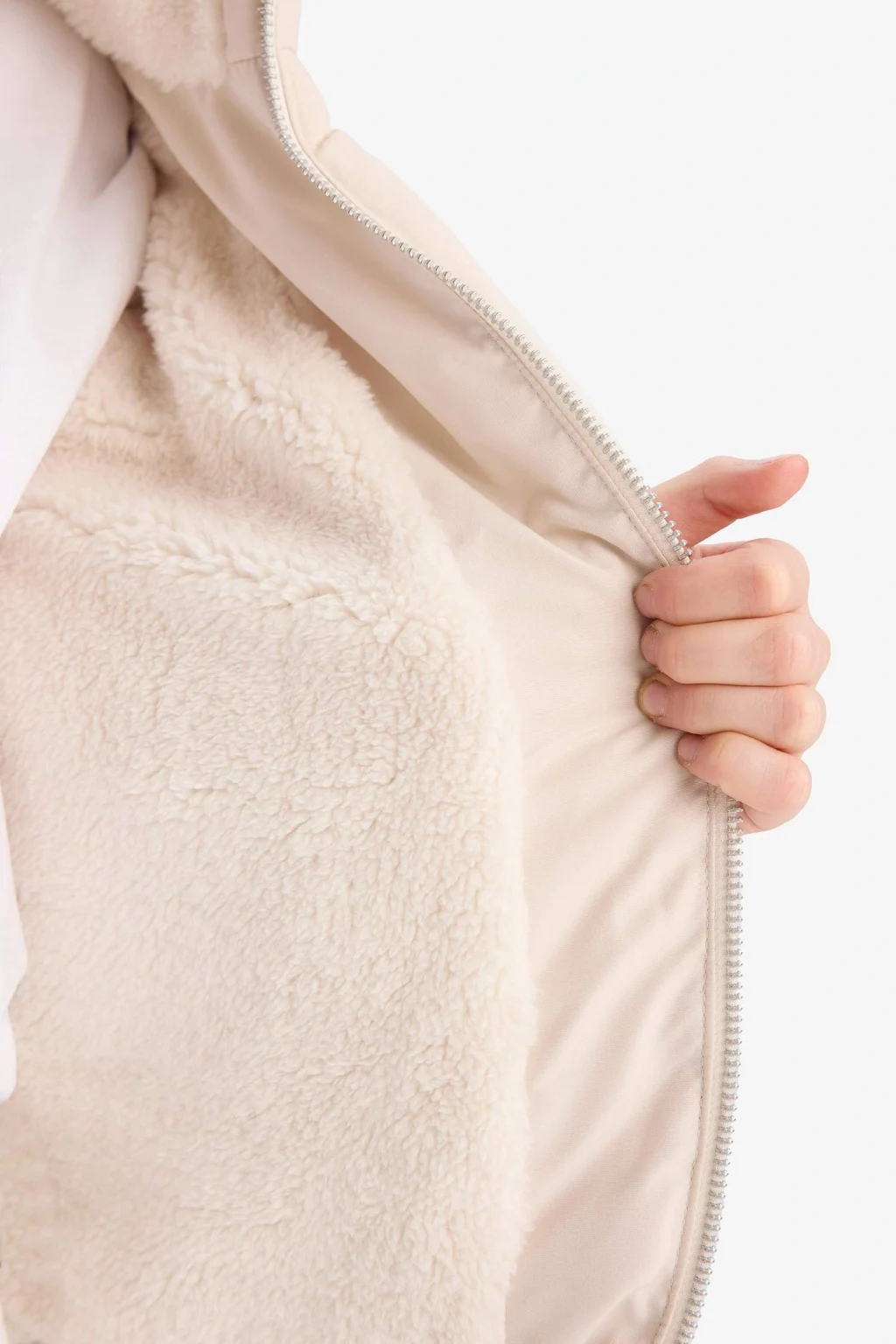Kız çocuklar için tasarlanmış pelüş astarlı fermuarlı şişme mont, soğuk havalarda ekstra sıcaklık ve konfor sunar. Yumuşak iç astarı ve pratik fermuar detayıyla hem şık hem de kullanışlı bir dış giyim parçasıdır.