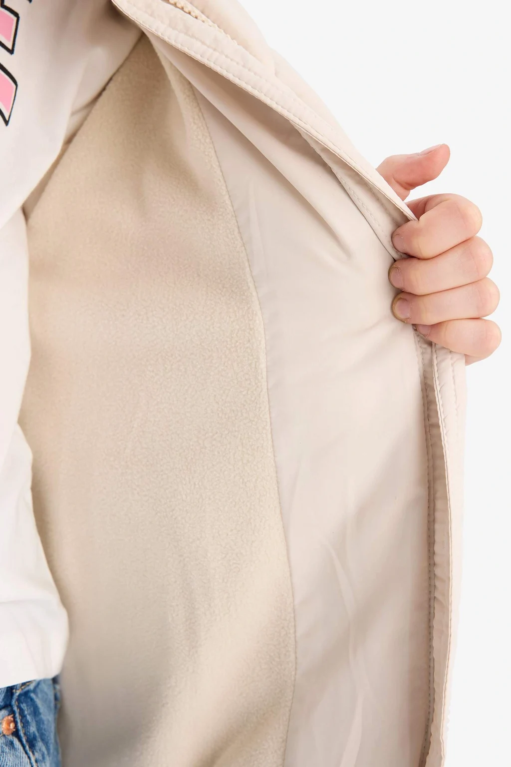 Kız çocuklar için su itici özelliğe sahip, polar astarlı fermuarlı şişme mont, soğuk ve yağışlı havalarda sıcaklık ve konfor sağlar. Dayanıklı yapısı ve şık tasarımıyla çocukların favorisi olacak pratik bir dış giyim parçasıdır.