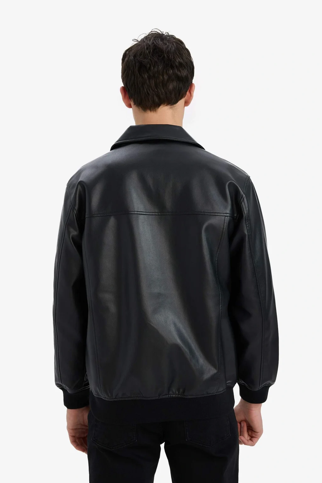 Klasik şıklığı modern bir dokunuşla sunan regular fit gömlek yaka fermuarlı suni deri ceket mont, tarz sahibi görünümler için ideal bir tercihtir. Şehirli ve cool duruşuyla hem günlük hem özel kombinlerde rahatlıkla kullanılabilir.