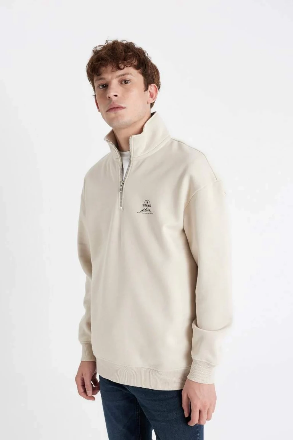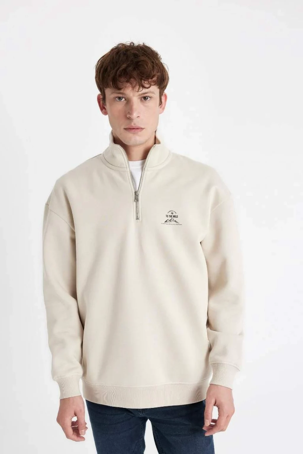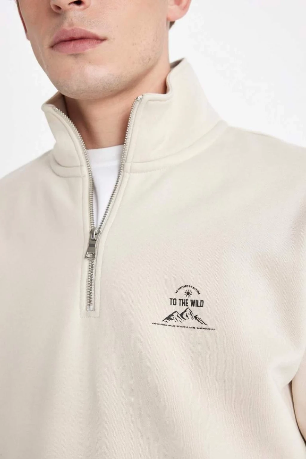 C6132 Comfort Regular Fit Rahat Kalıp Dik Yaka Baskılı Sweatshirt