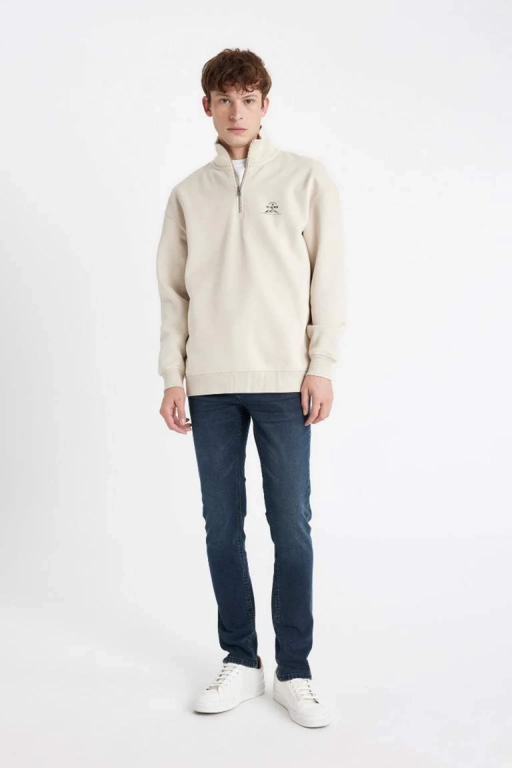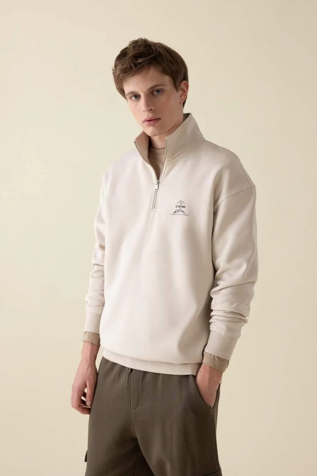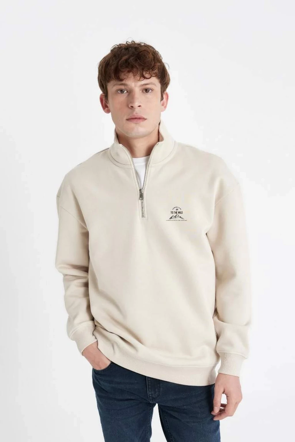 C6132 Comfort Regular Fit Rahat Kalıp Dik Yaka Baskılı Sweatshirt