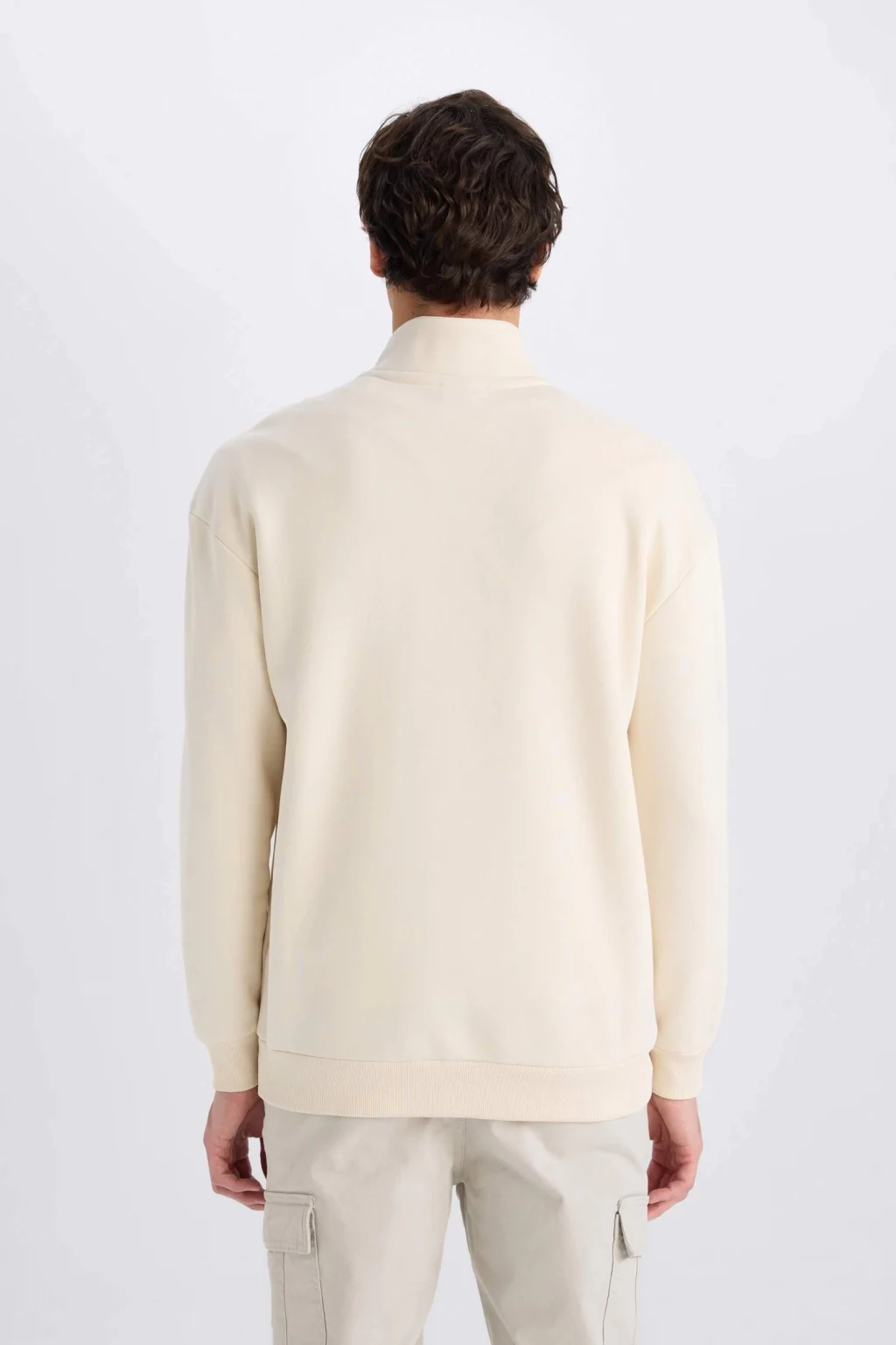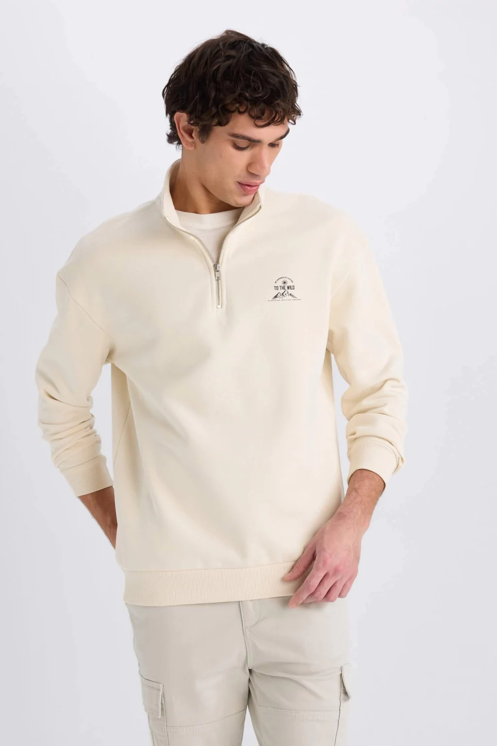 Yetişkin erkekler için örme, slogan desenli, fermuarlı sweatshirt. İçi yumuşak tüylü kumaşıyla konforlu bir seçenek. Sonbahar/Kış sezonuna uygun uzun kollu ve dik yaka tasarımı.
