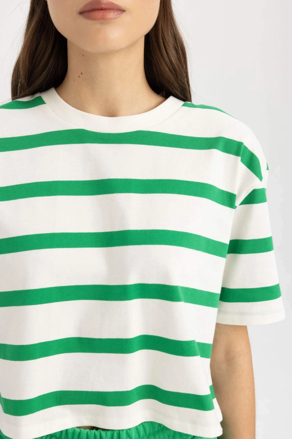 Kısa kollu tişört, şık ve rahat bir tarz sunar. Bisiklet yaka detayıyla modern bir hava katar. Boxy fit kesimiyle özgürce hareket etmenizi sağlar. Günlük kullanıma uygun ve çeşitli kombinlerle kolayca uyum sağlar. Gardırobunuzun vazgeçilmezi olmaya aday.