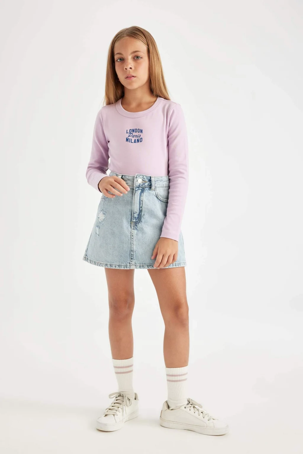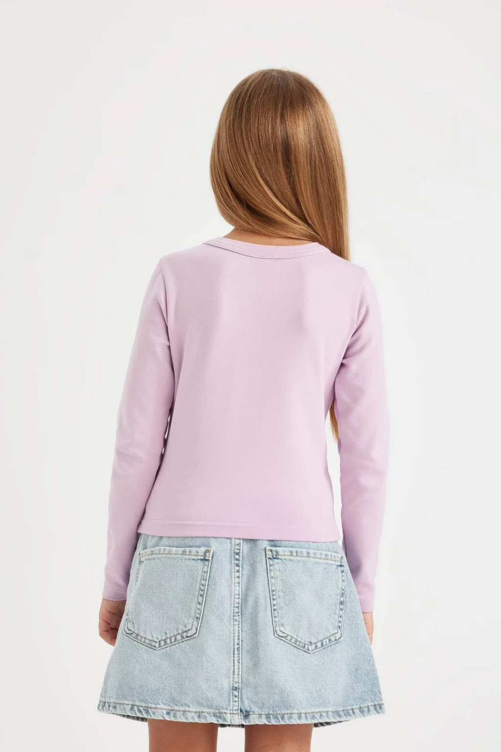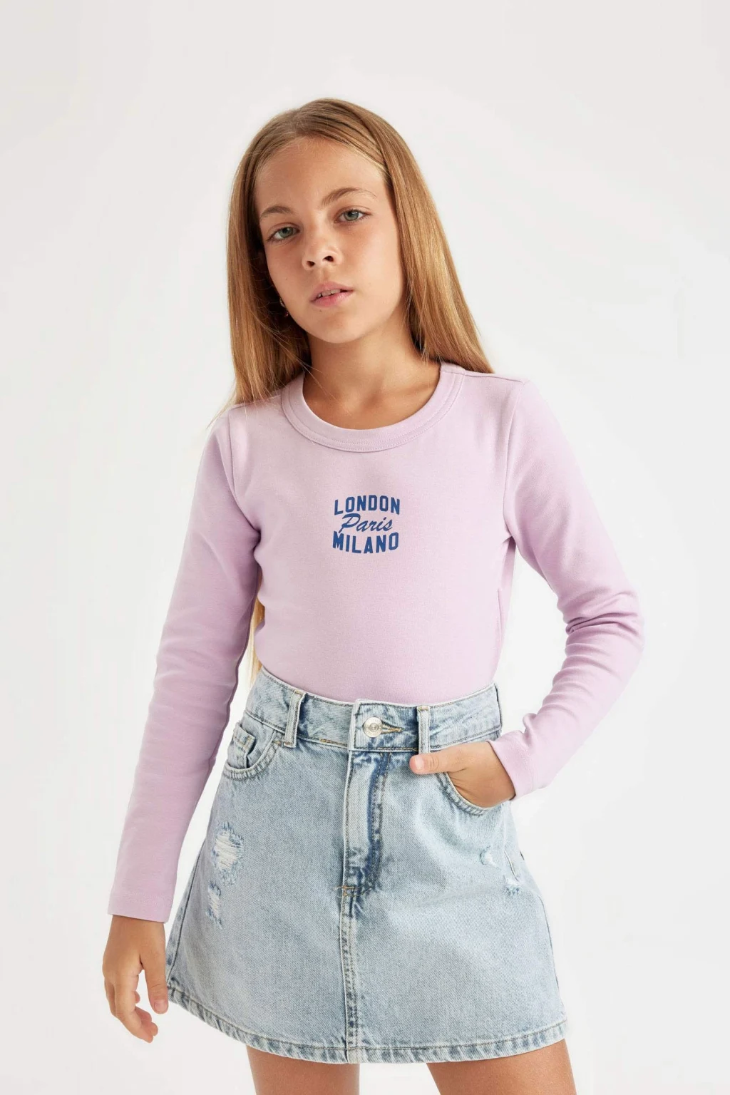Kız Çocuk Bisiklet Yaka Baskılı Fitilli Kaşkorse Uzun Kollu Tişört: Stil sahibi ve rahatlık arayan kız çocukları için ideal bir seçim. Baskı ve fitilli kaşkorse detayıyla dikkat çeken bu tişört, günlük kullanımdan özel günlerdeki kombinlere kadar geniş bir kullanım alanı sunuyor.