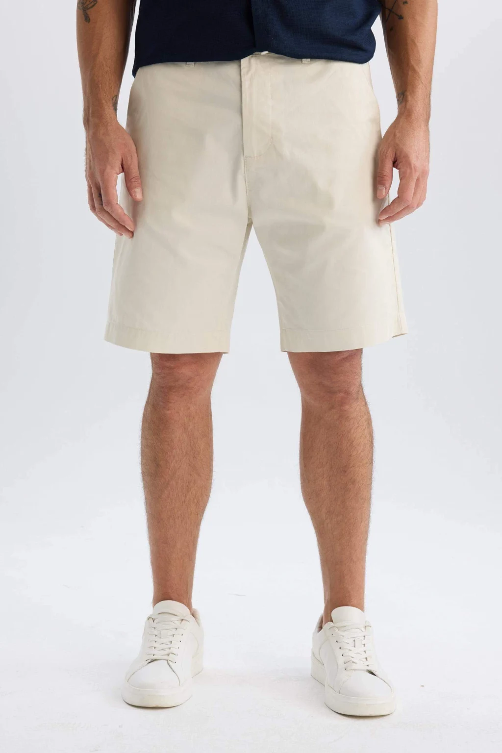 %100 pamuk gabardin kumaştan üretilen Regular Fit Bermuda Şort, dayanıklı dokusu ve konforlu kesimiyle günlük kullanım için idealdir. Şık ve sade tasarımıyla yaz kombinlerinize kolayca uyum sağlar.