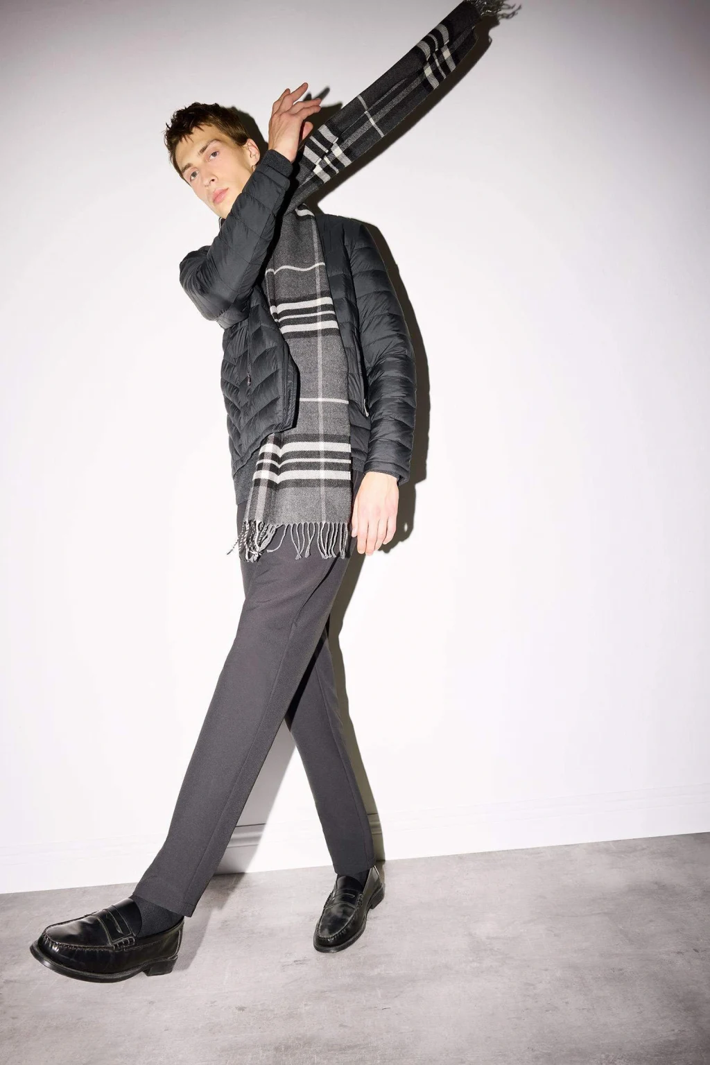 Erkekler için tasarlanmış kareli dokuma atkı, sıcak tutan yumuşak kumaşı ve klasik deseniyle kış kombinlerine şıklık katar. Hem rahat hem de stil sahibi bir aksesuar olarak öne çıkar.