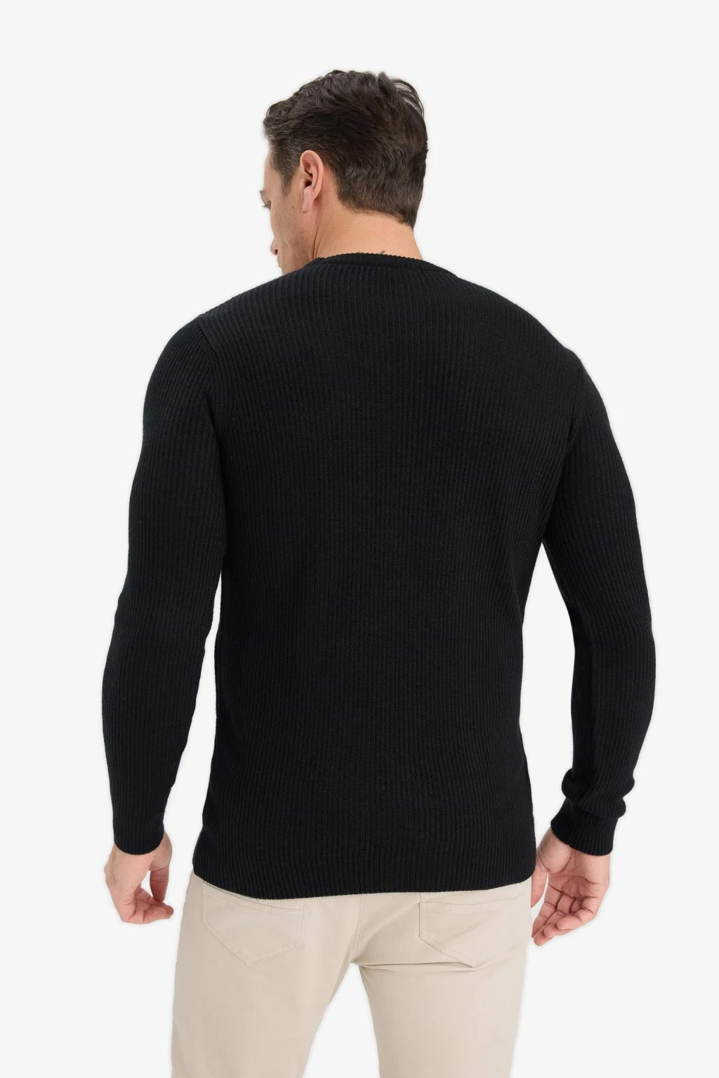 Dokulu yapısı ve bisiklet yaka tasarımıyla öne çıkan bu standart fit triko kazak, sade şıklığı ve konforu bir araya getirir. Günlük ve ofis stiline kolayca uyum sağlayan zamansız bir parçadır.