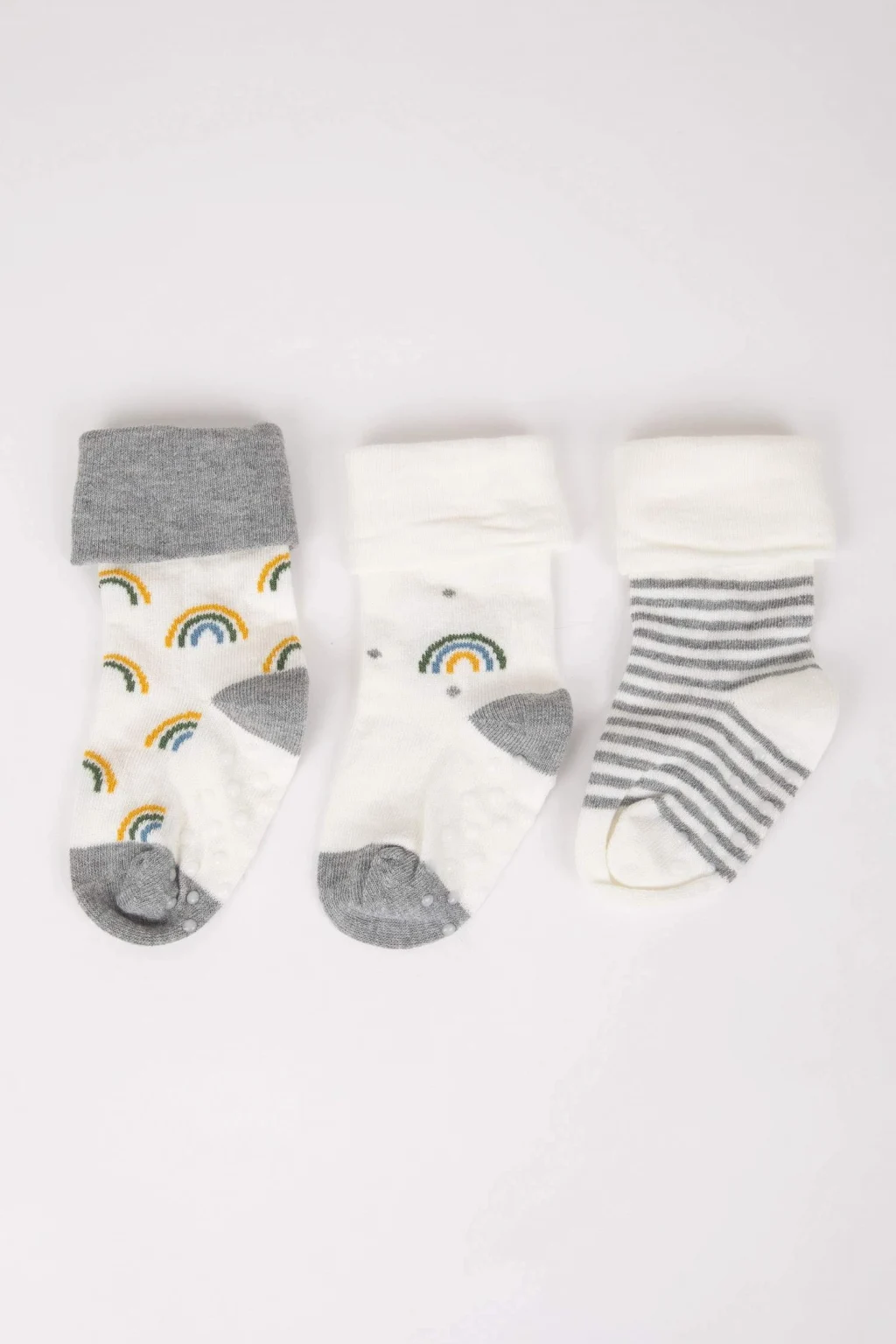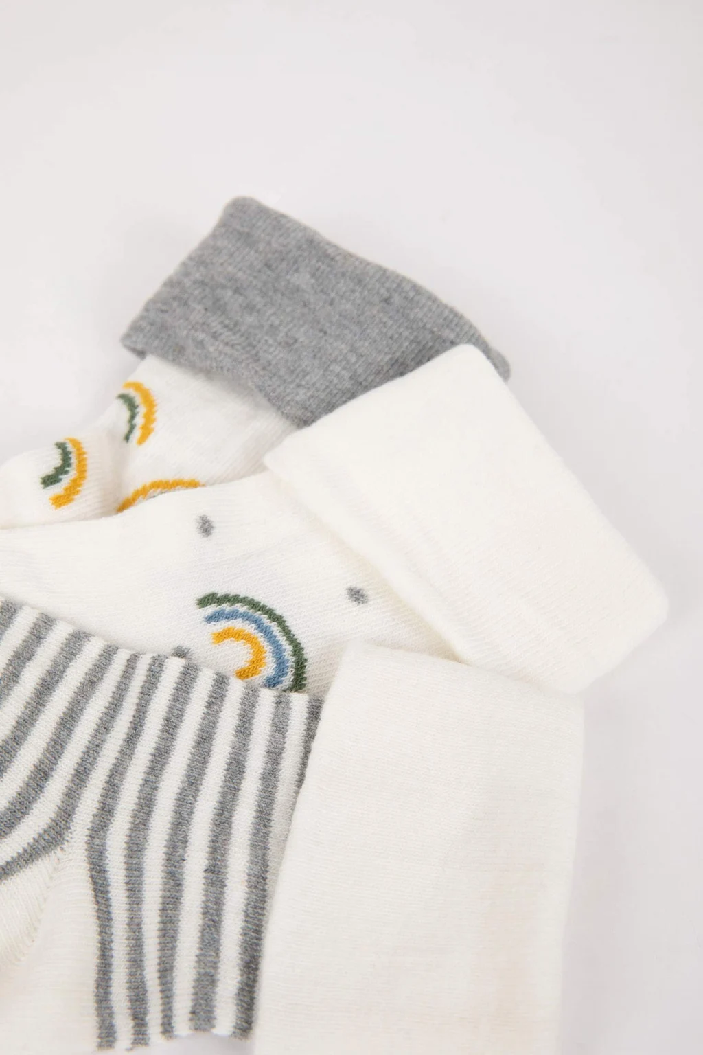 Erkek Bebek Çizgili Dikişsiz 3'lü Pamuklu Uzun Çorap: Kaliteli pamuklu kumaştan üretilen, şık ve rahat uzun çorap seti. Bebeğinizin gün boyu konforunu sağlar. Şık çizgili tasarımıyla her tarza uyum sağlar. Bebeğinizin gardırobunda vazgeçilmez bir parça olacak.