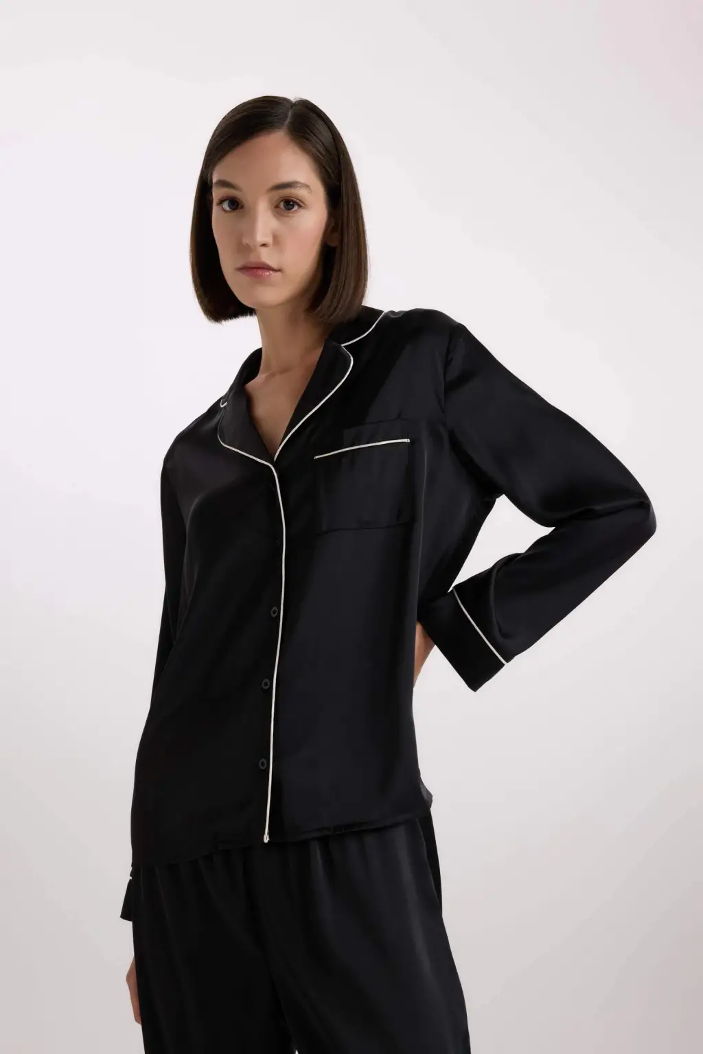 Yetişkinler için Fall in Love markasının siyah saten takımı, kış mevsimi için ideal bir seçenektir. Regular fit kesimi ve uzun kollu yapısıyla şıklığı ve konforu bir arada sunar. Ev giyim kategorisinde yer alan bu 2'li takım, kadınların gardırobunda vazgeçilmez olacak. Pijama yaka detayıyla da fark yaratır.