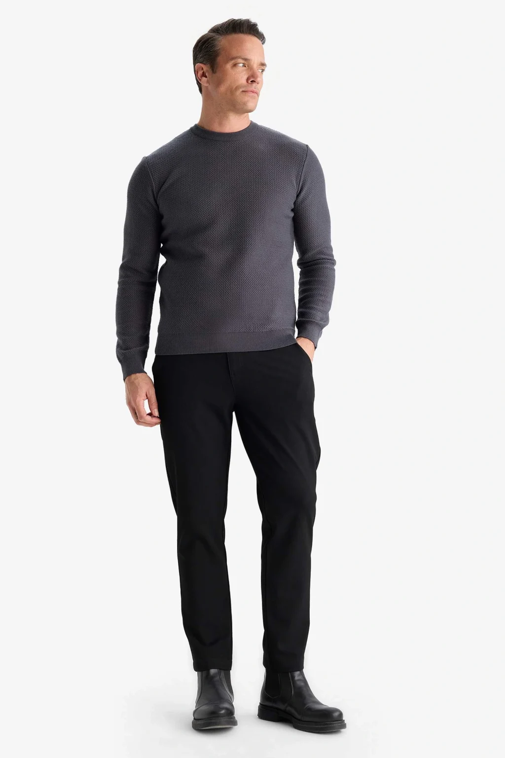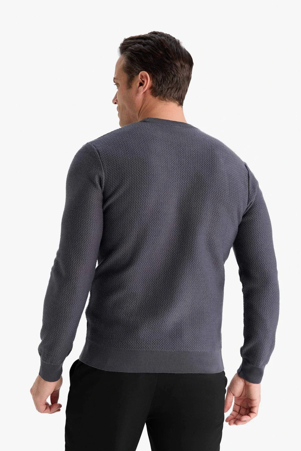 Klasik bisiklet yaka tasarımıyla zamansız bir stil sunan triko kazak, yumuşak dokusuyla gün boyu konfor sağlar. Standart fit kalıbı sayesinde hem tek başına hem katmanlı kombinlerde ideal bir parçadır.