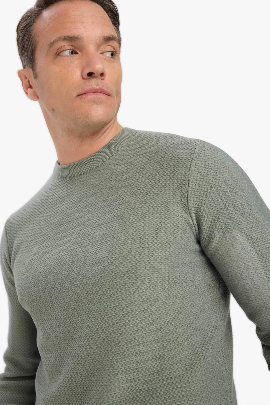 Klasik bisiklet yaka tasarımıyla zamansız bir stil sunan triko kazak, yumuşak dokusuyla gün boyu konfor sağlar. Standart fit kalıbı sayesinde hem tek başına hem katmanlı kombinlerde ideal bir parçadır.