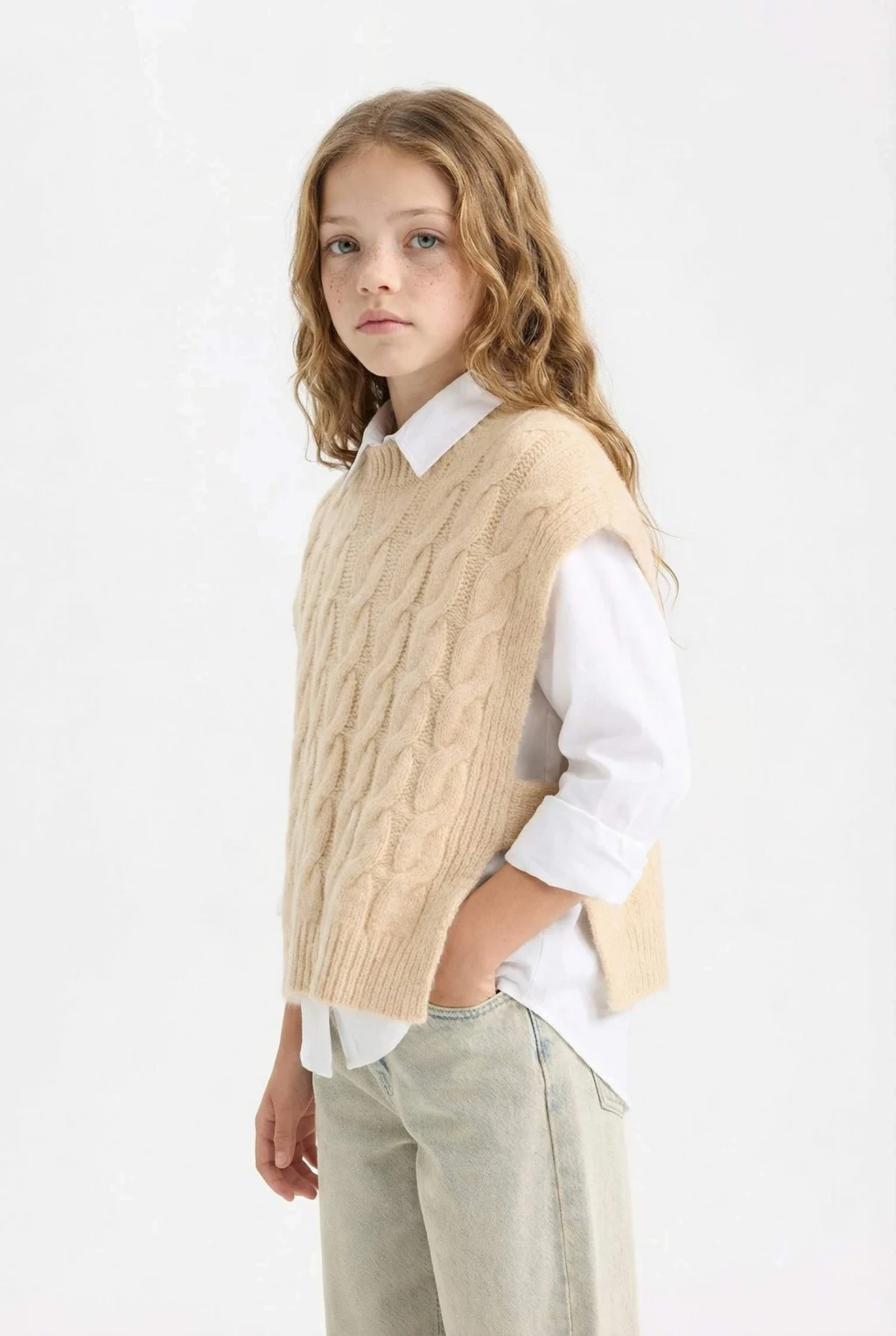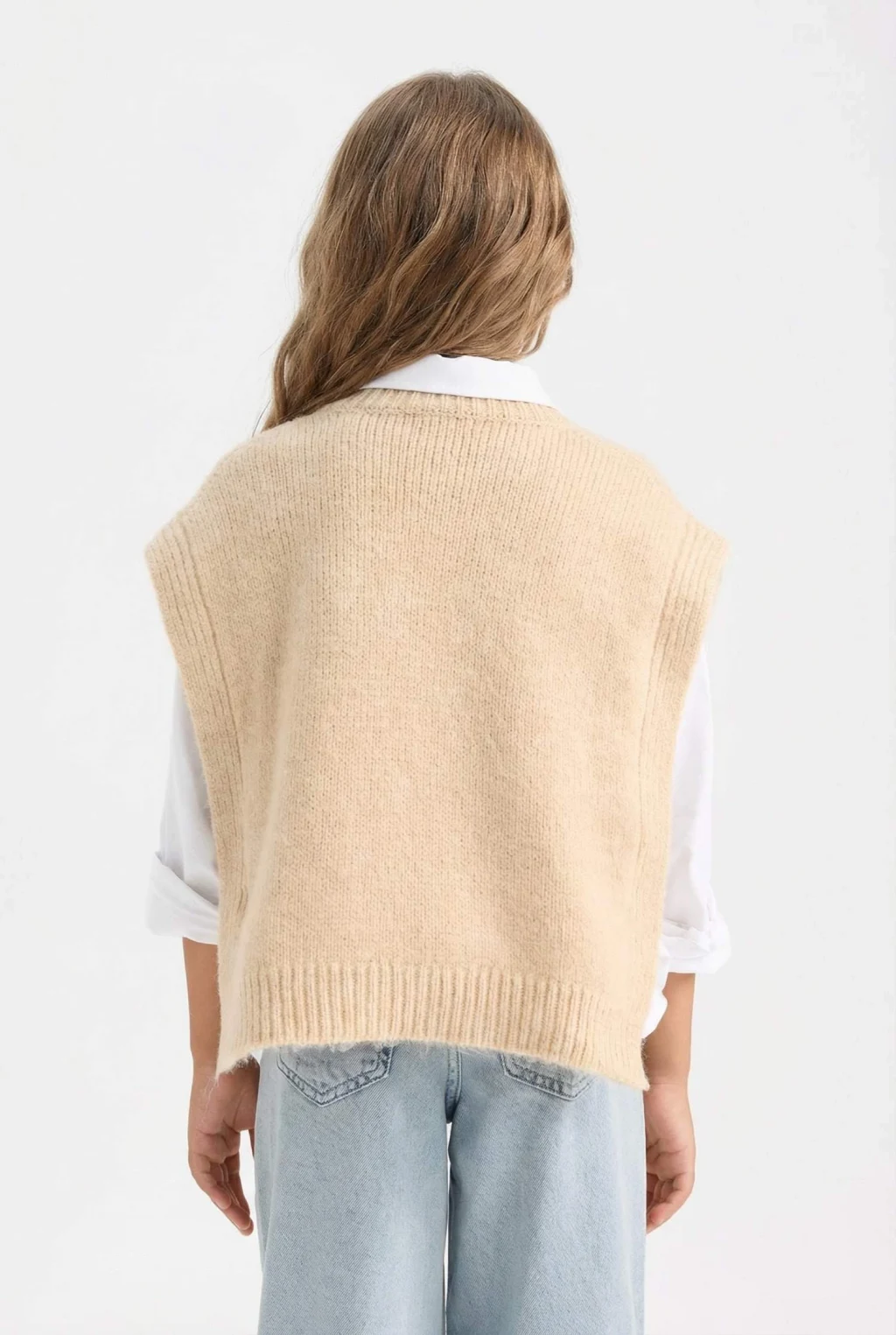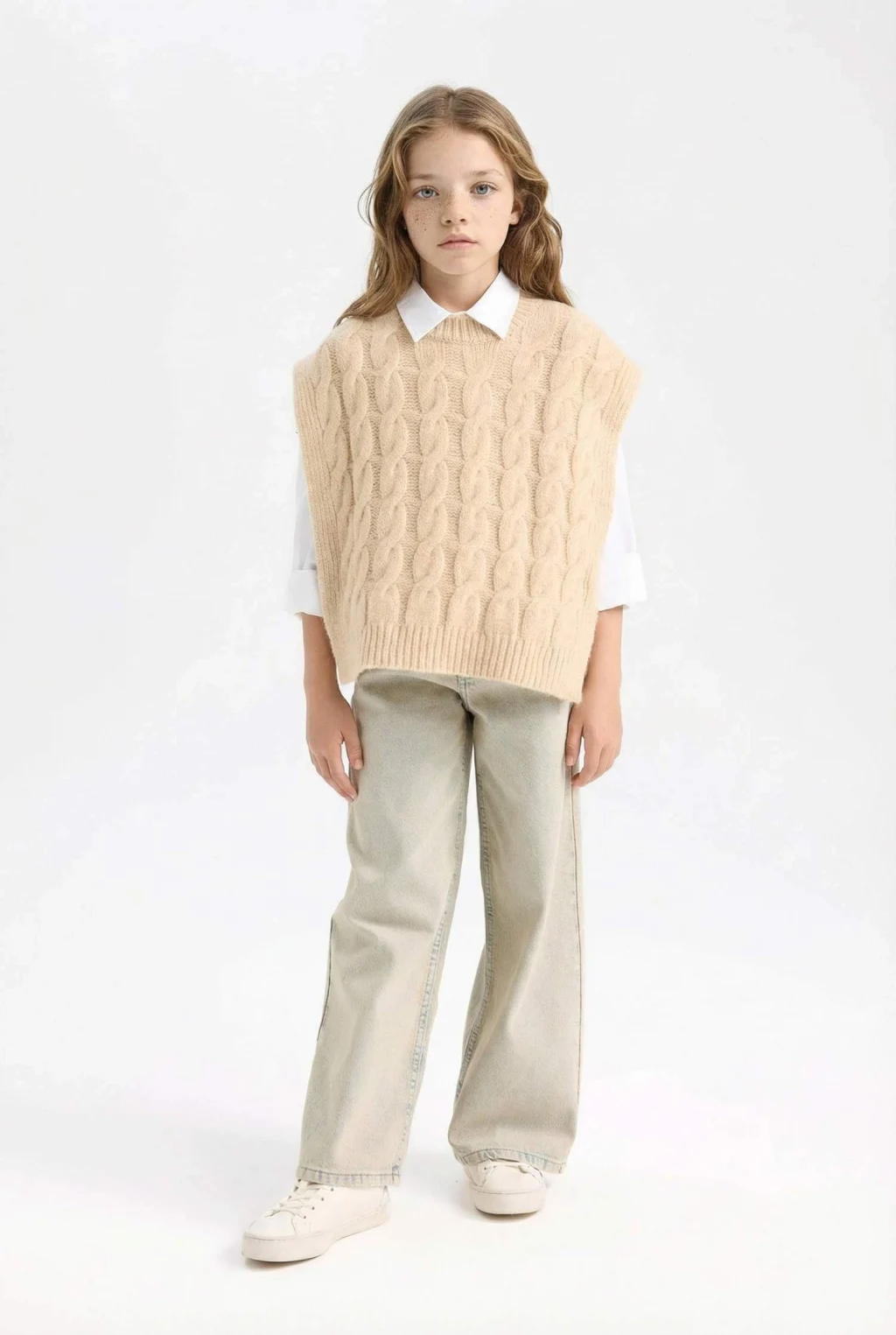 Defacto C9659A8BG588 Bej Kız Çocuk Bisiklet Yaka Saç Örgüsü Desenli Triko Süveter
