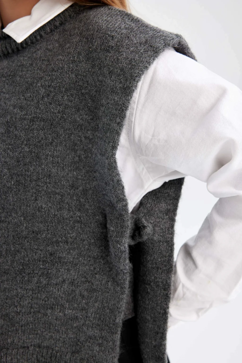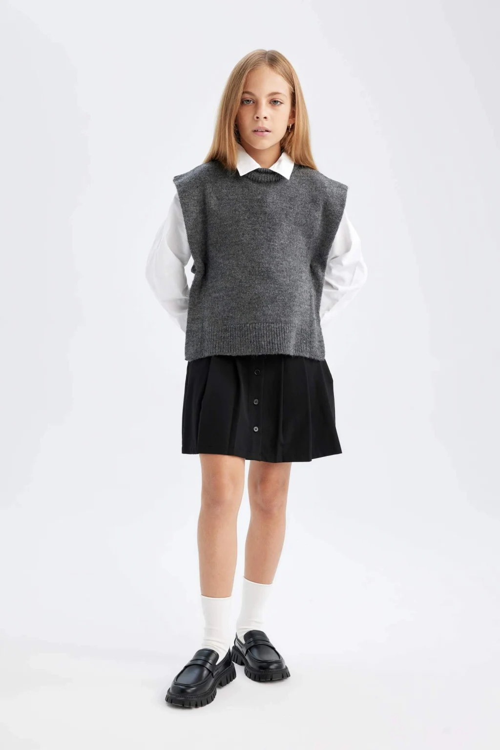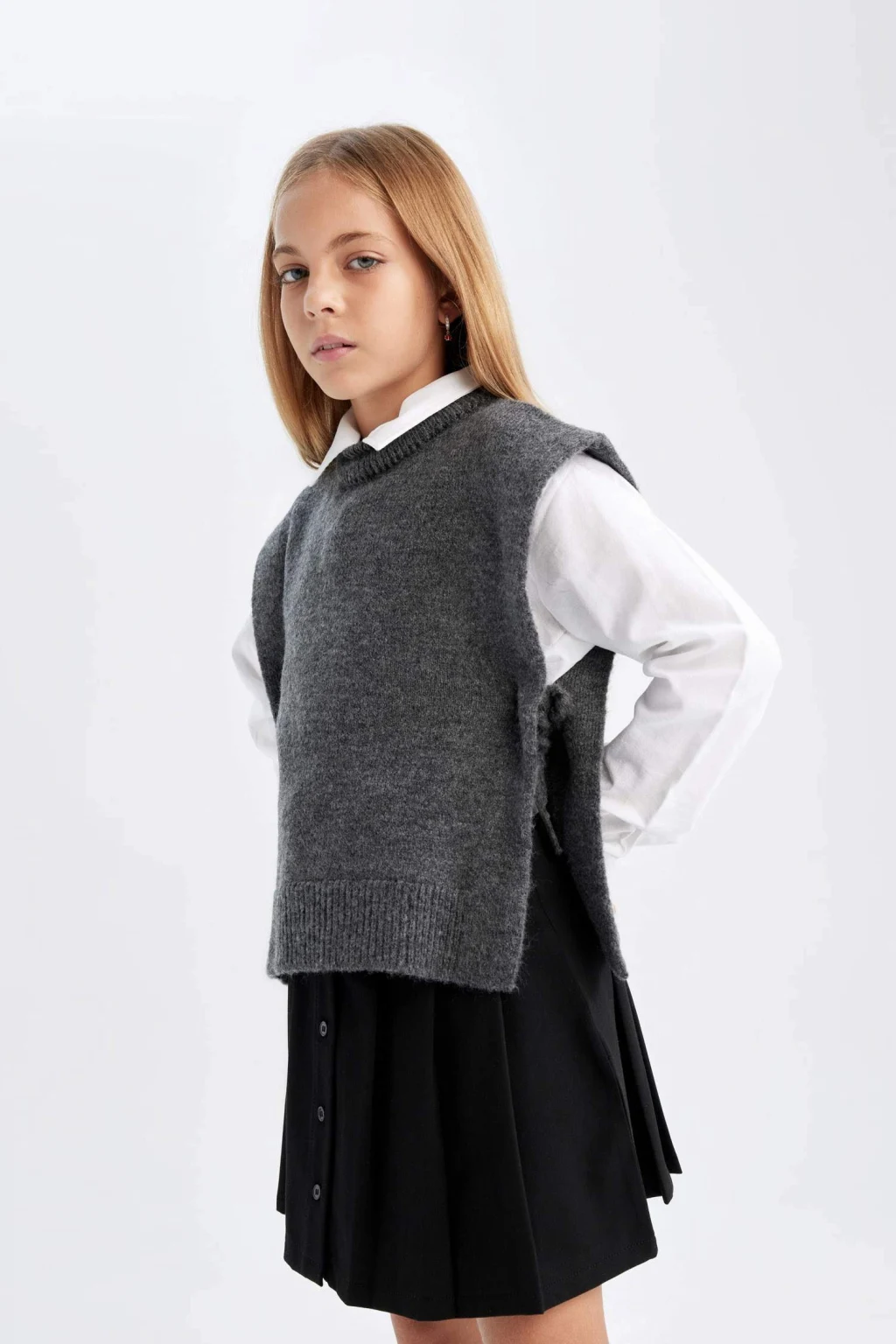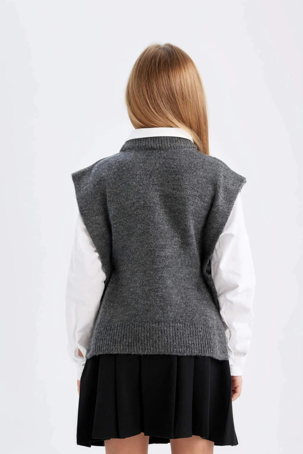 Defacto C9660A8AR84 Antrasit Kız Çocuk Bisiklet Yaka Düz Triko Süveter