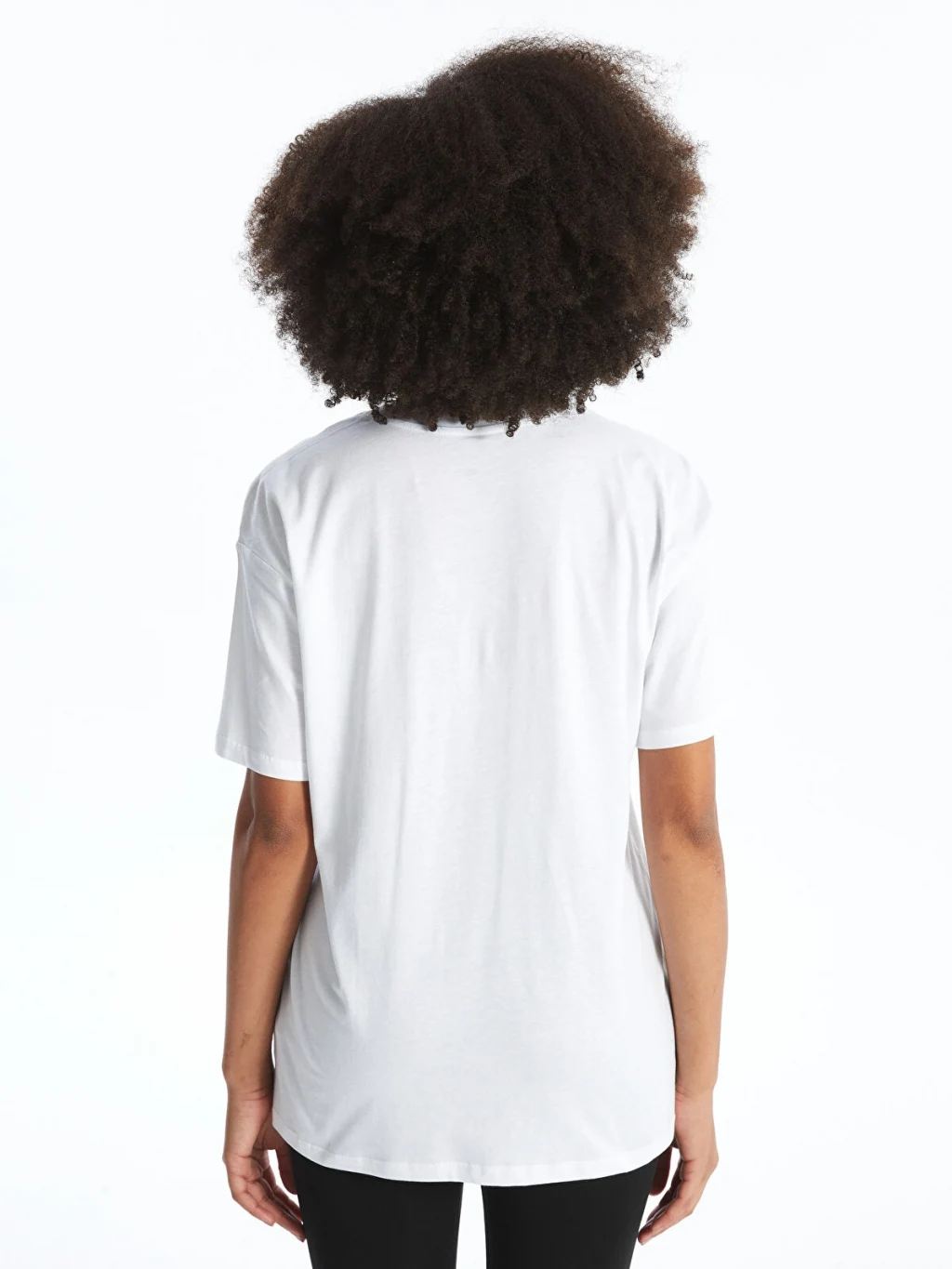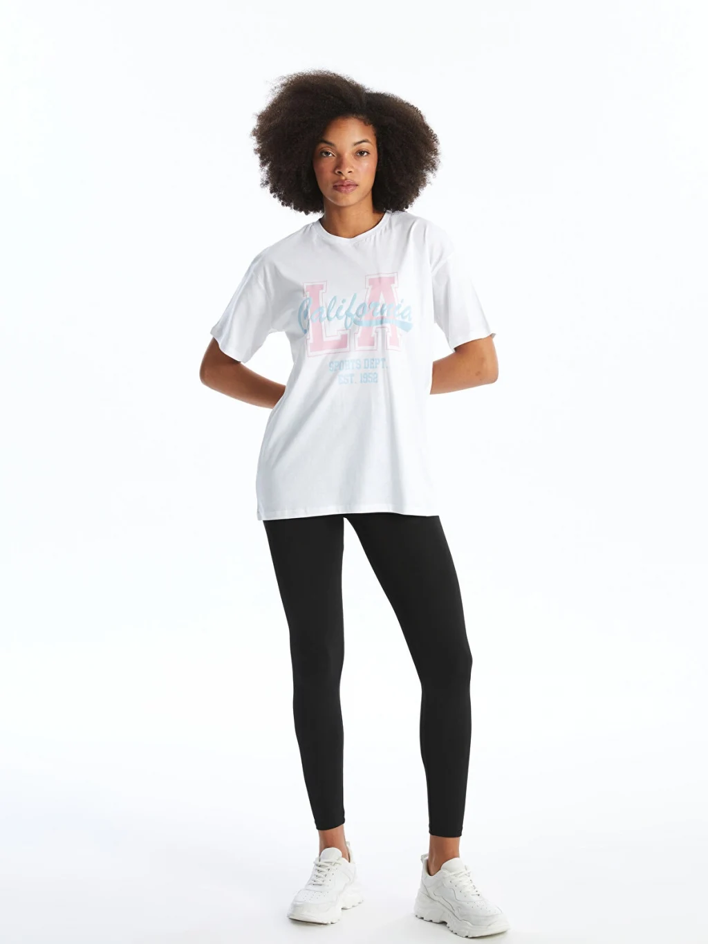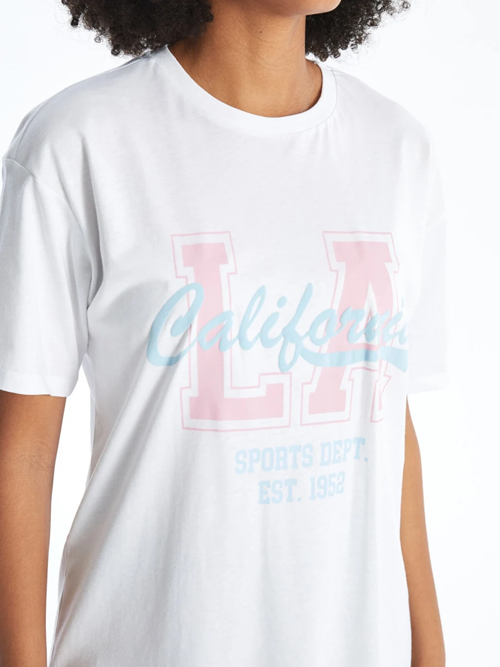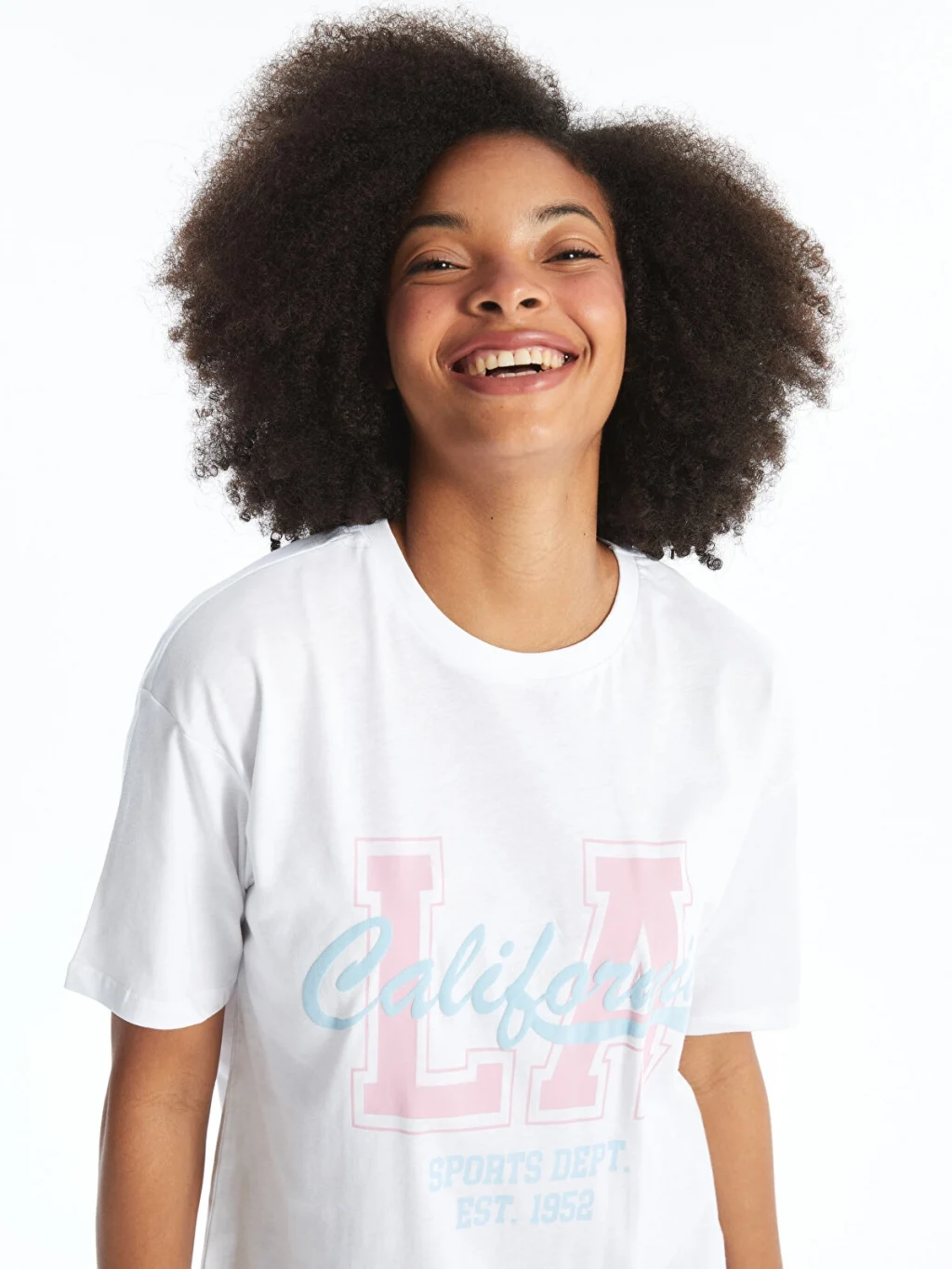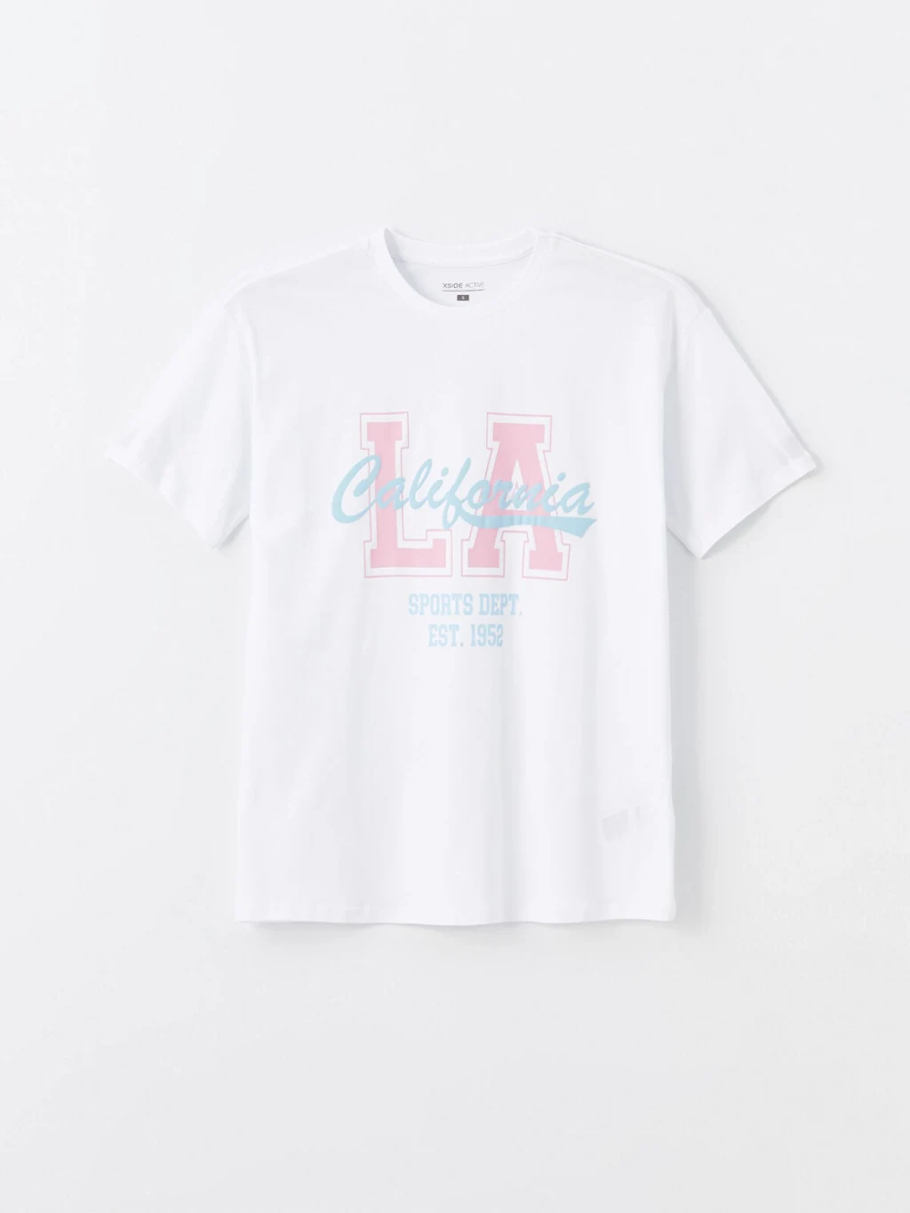 Bisiklet yaka baskılı kısa kollu tişört, süprem kumaştan üretilmiştir. Hafif ve nefes alabilen yapısı ile yaz aylarında serinlik sunar.