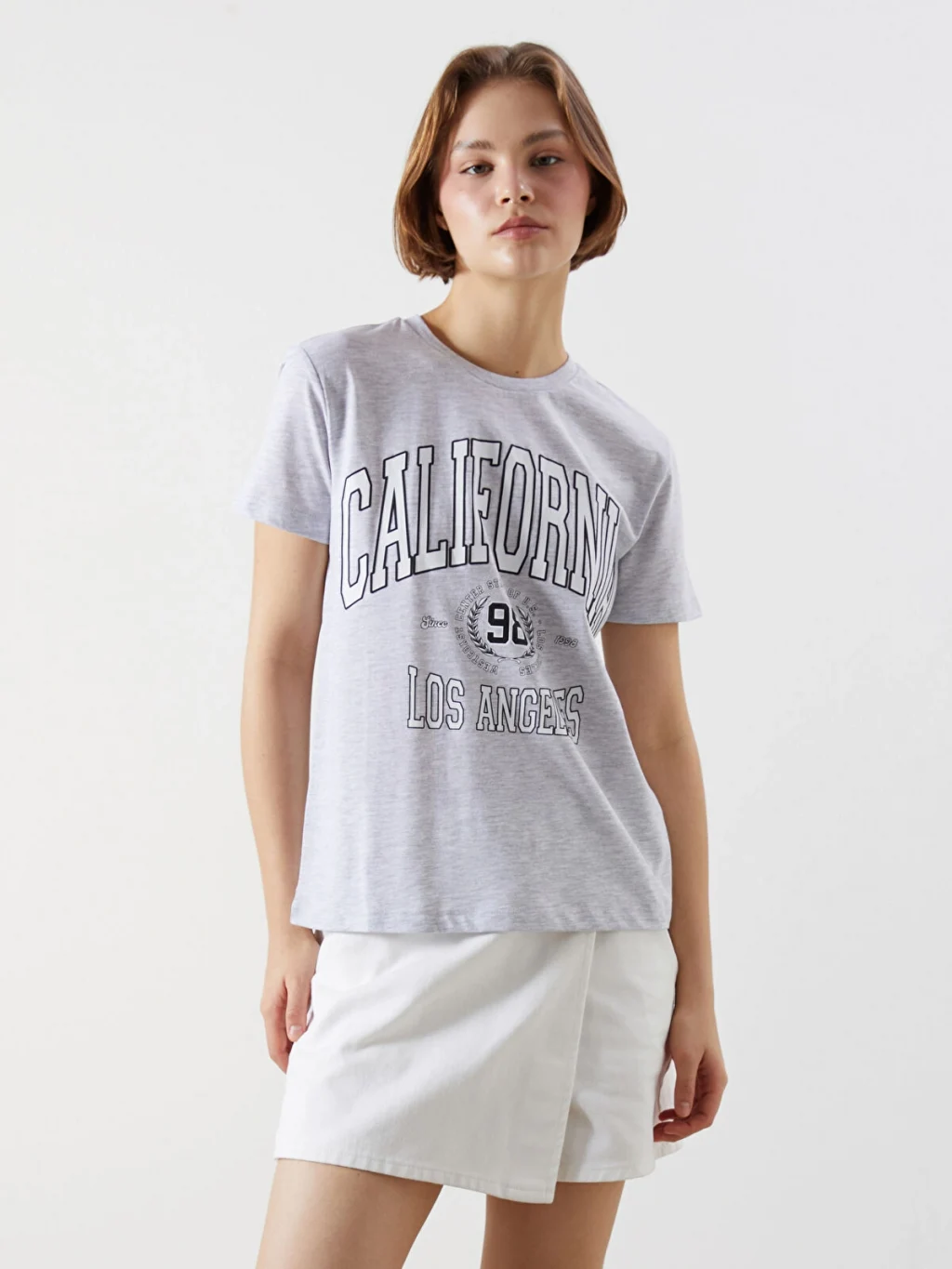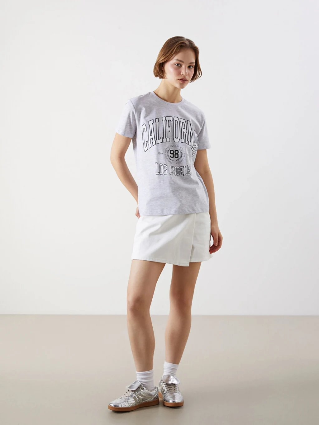 Pamuk karışımlı kumaştan, baskı detaylı tişört.