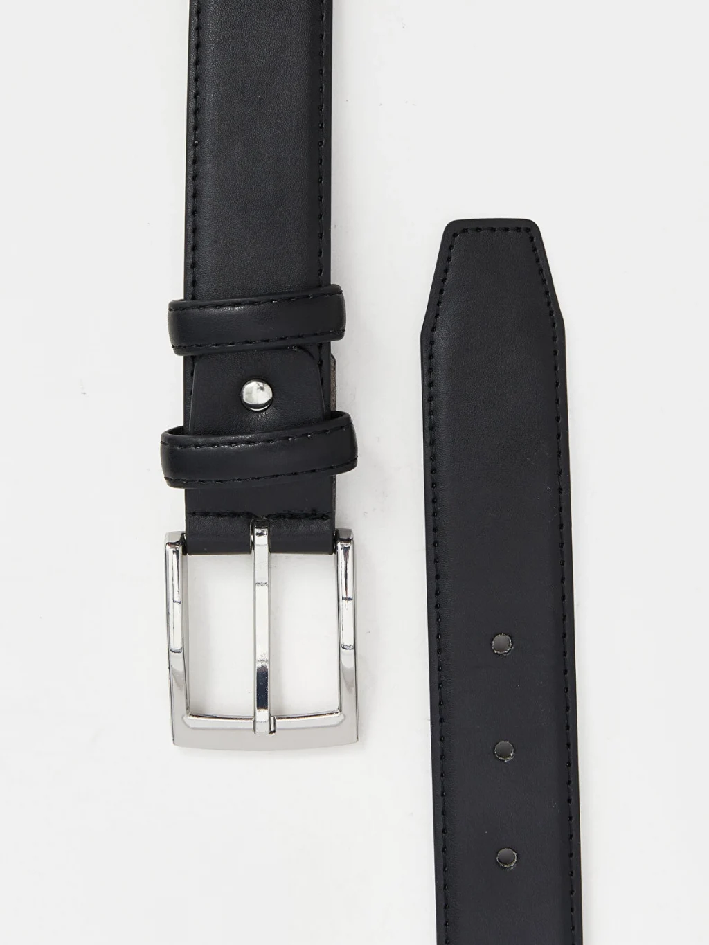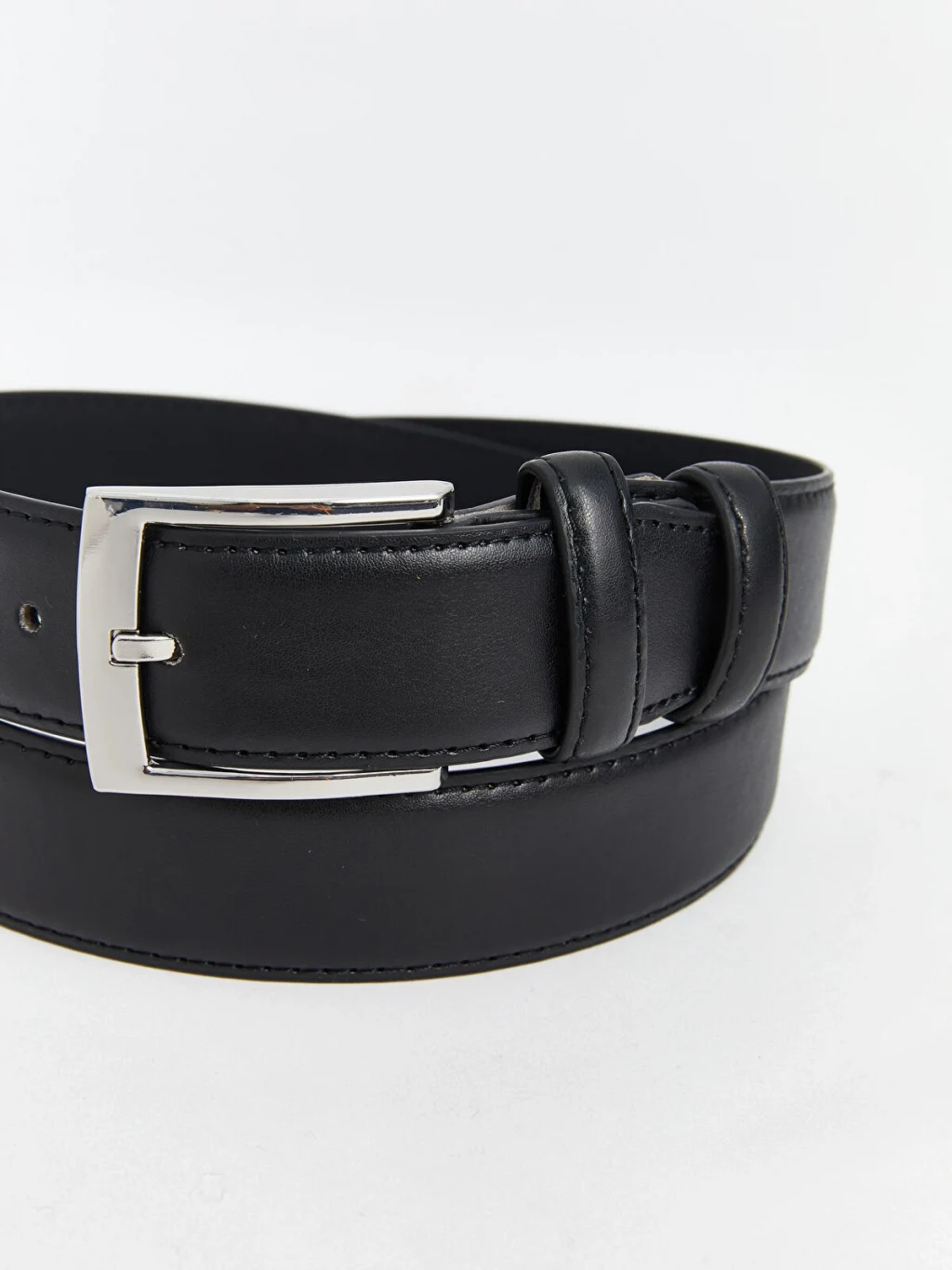 Suni deriden üretilmiş olan erkek kemer, klasik bir tasarıma sahip olup metal, dikdörtgen bir toka ile kapanmaktadır.