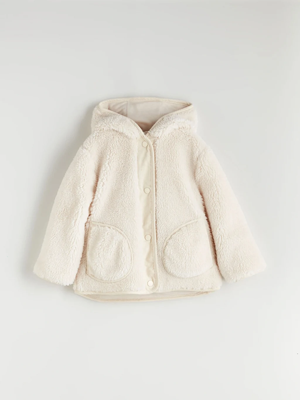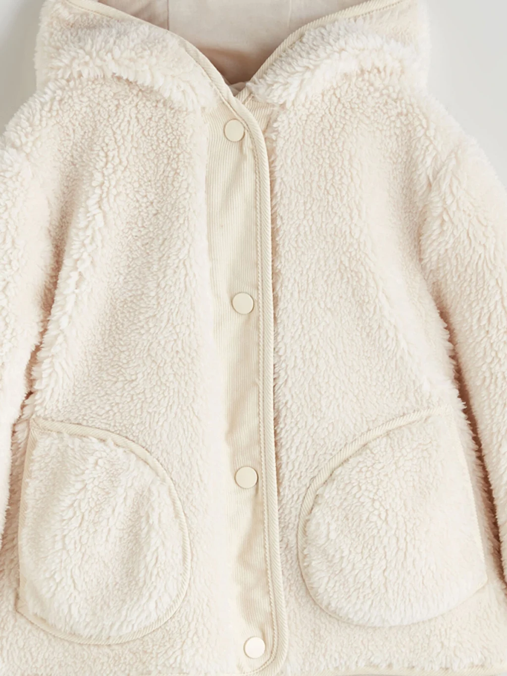 Kapüşonlu ve uzun kollu kız çocuk mont, önden çıtçıt kapamalıdır. Ön kısmında iki adet yama cep detayı bulunur.