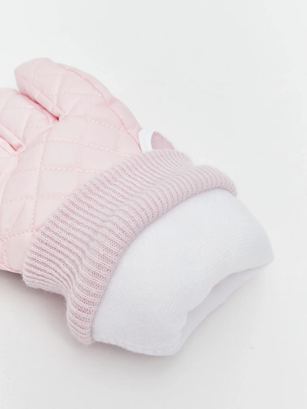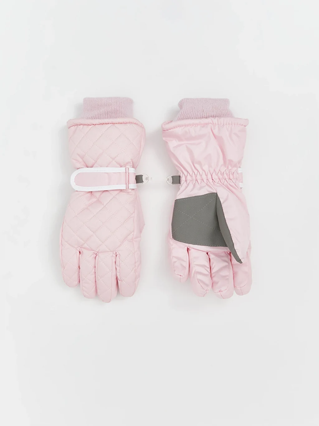 Kapitone desenli kız çocuk eldiven, ribanalı manşetlere, cırt cırtlı ayarlanabilir bilek bandına ve avuç içi takviyesine sahiptir.