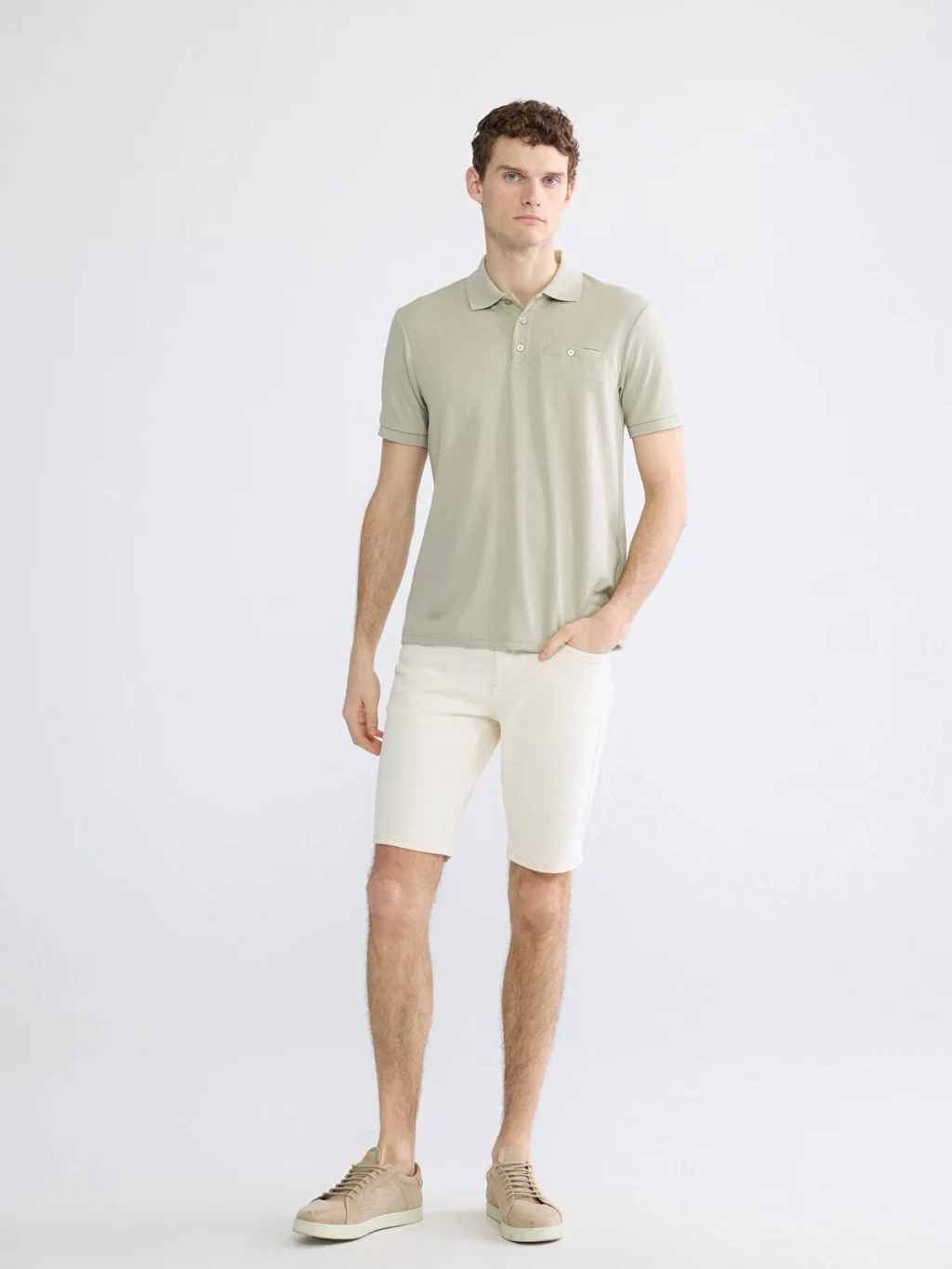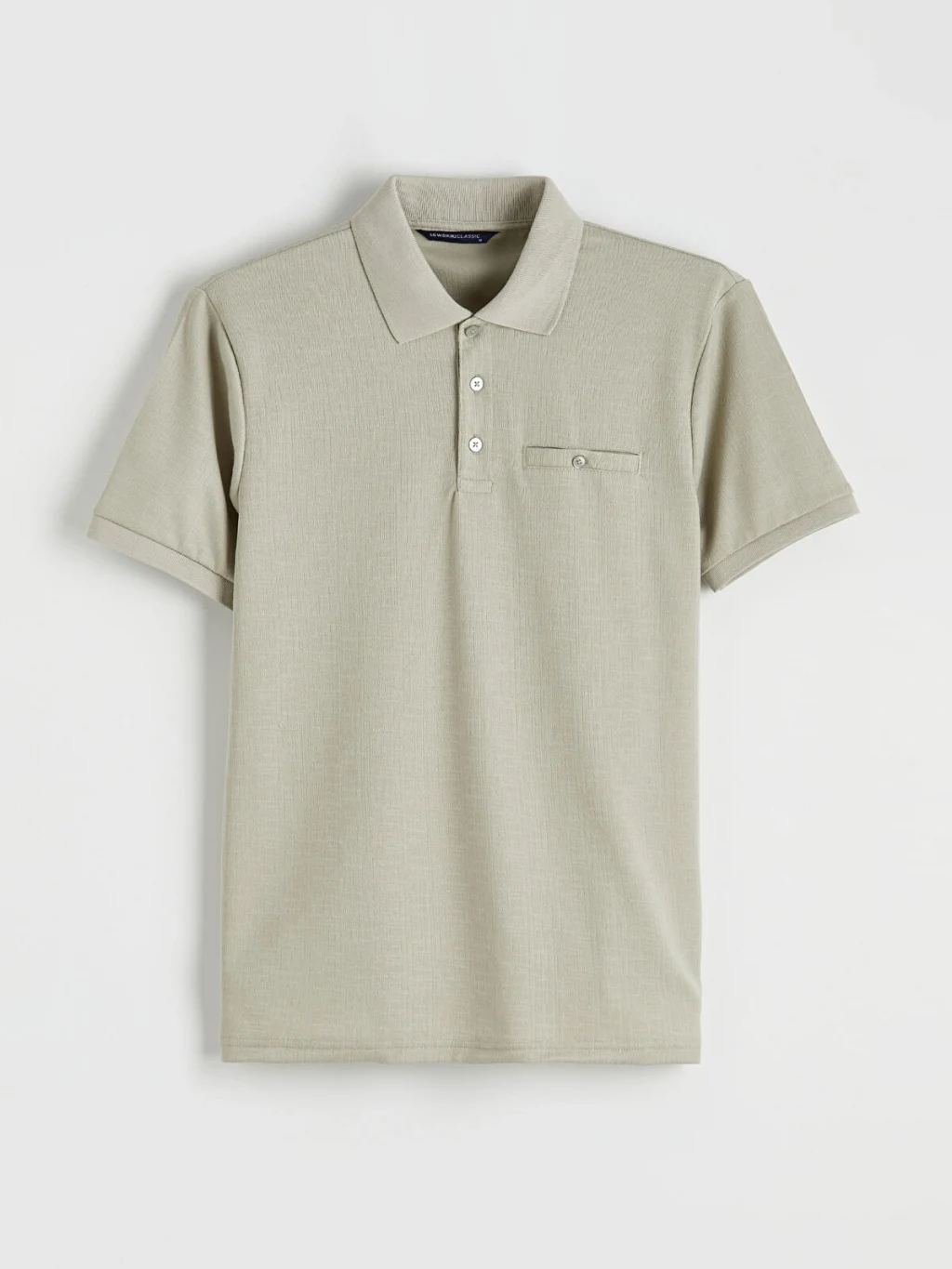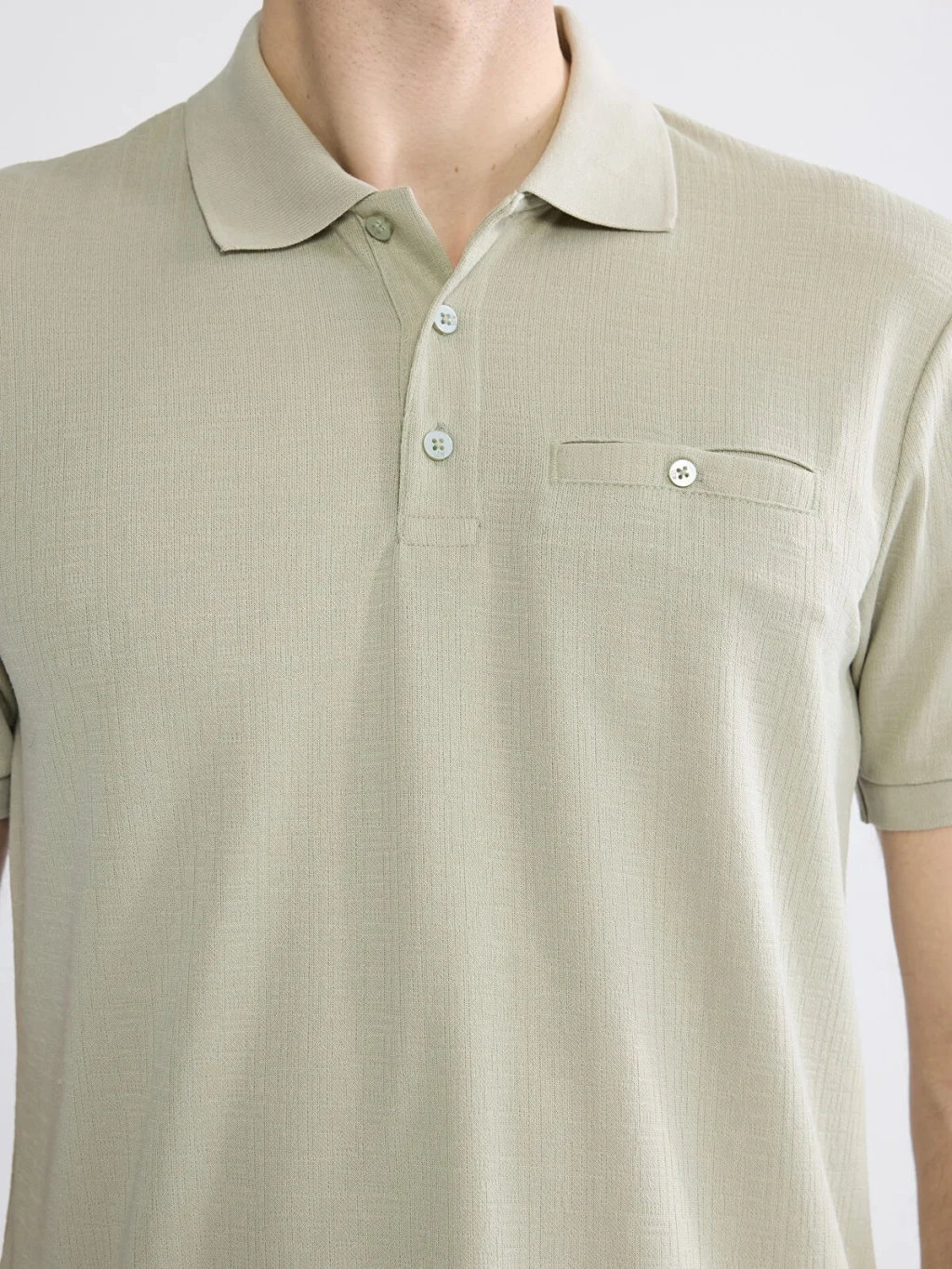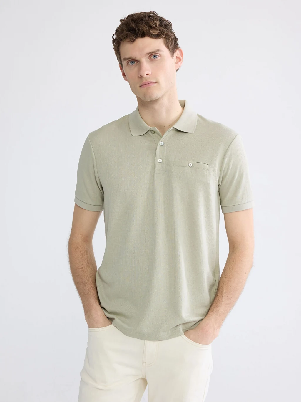 Kısa kollu ve polo yakalı erkek tişört, strüktürlü kumaştan üretilmiştir. Düğme kapamalıdır ve tek cepli tasarıma sahiptir.