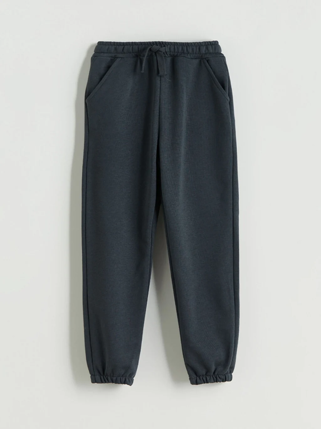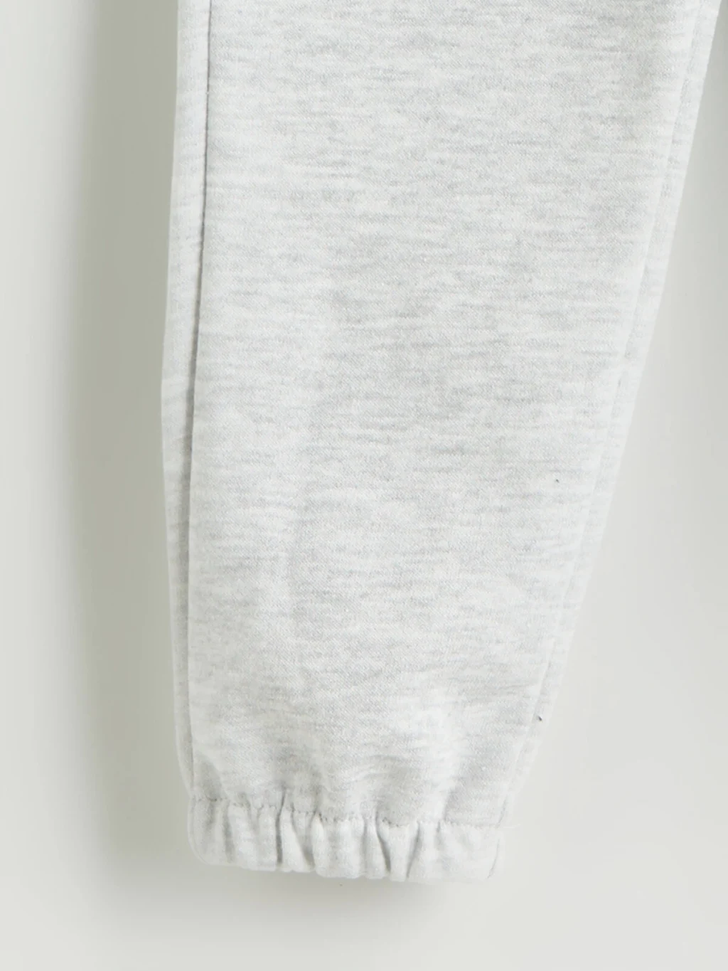 Beli ve paçası lastikli 2'li eşofman altı, 3 iplik kumaştan üretilmiştir.