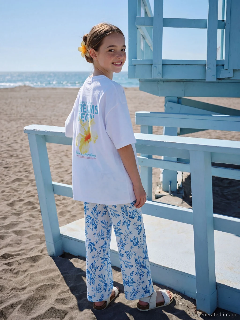 Kız çocuk tişört, %100 pamuk penye kumaştan üretilmiştir. Bisiklet yaka ve kısa kollu olup bol kalıba sahiptir.