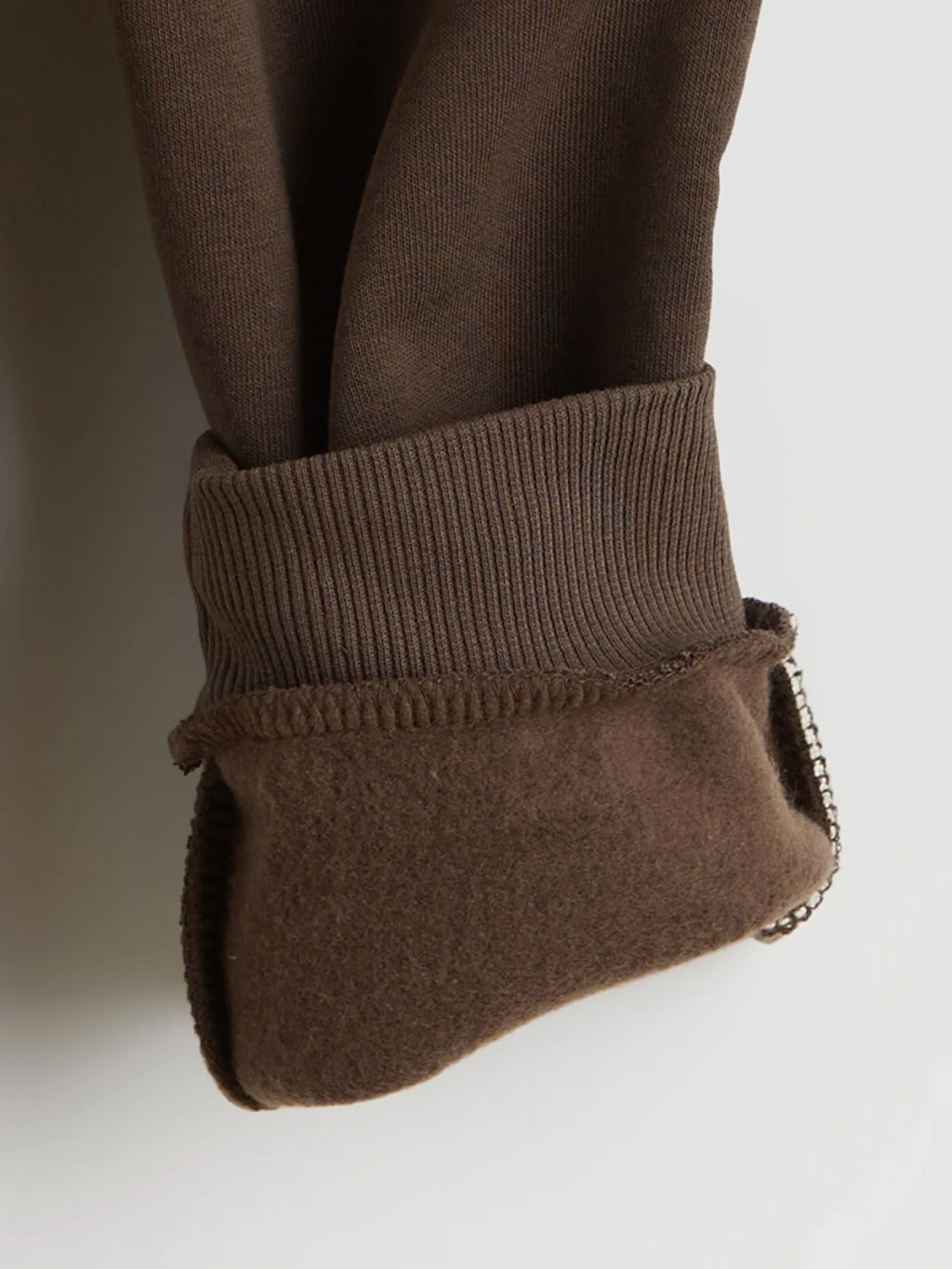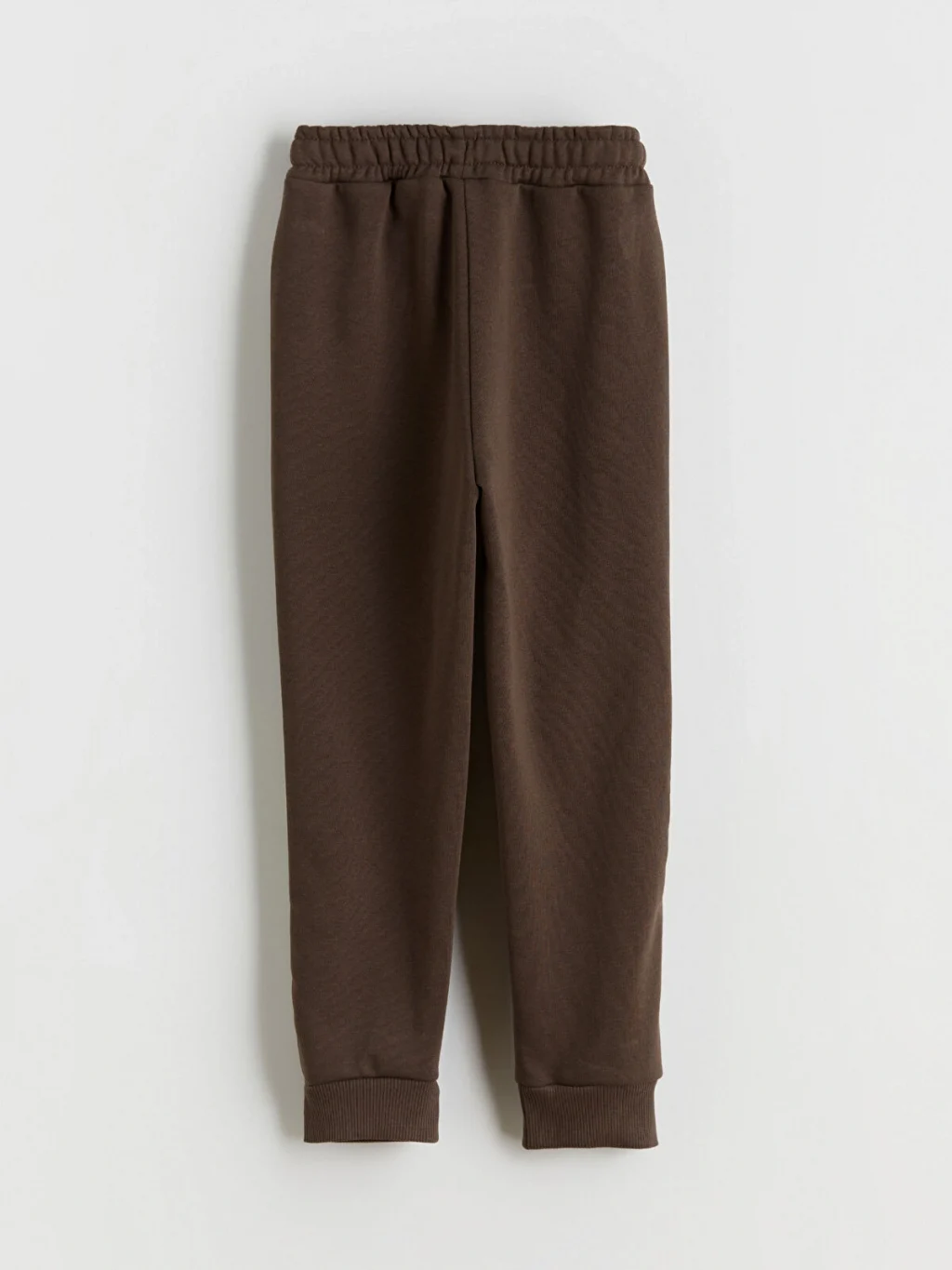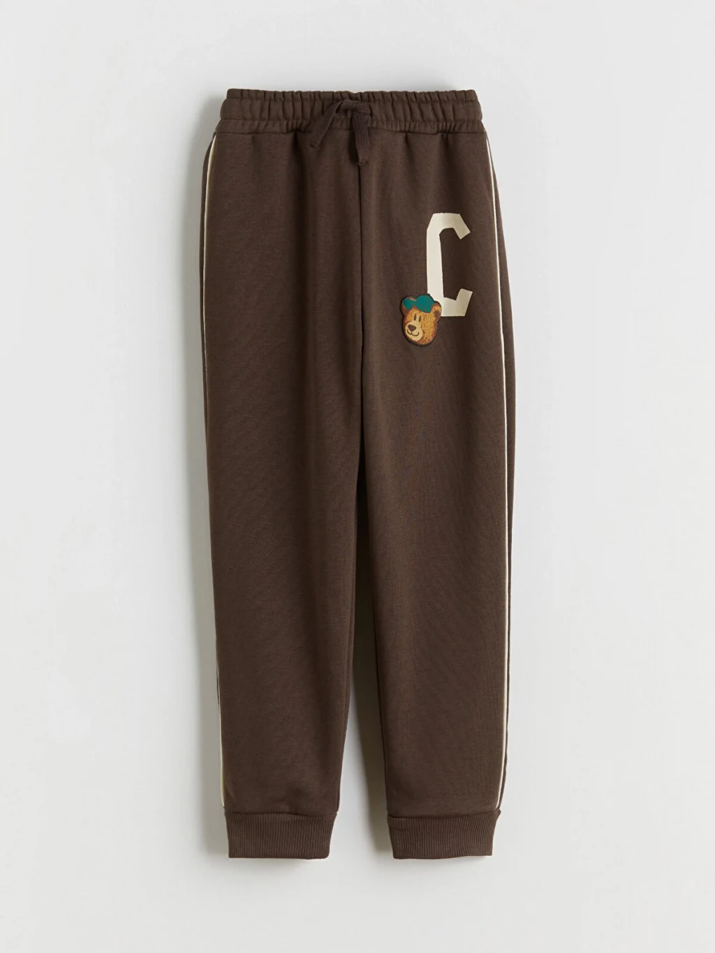 Beli lastikli ve ayarlanabilir bağcıklı erkek çocuk jogger eşofman altı, kalın 3 iplik şardonlu kumaştan üretilmiştir. Paçaları ribanalı, yanları şeritli ve üzeri aplikelidir.