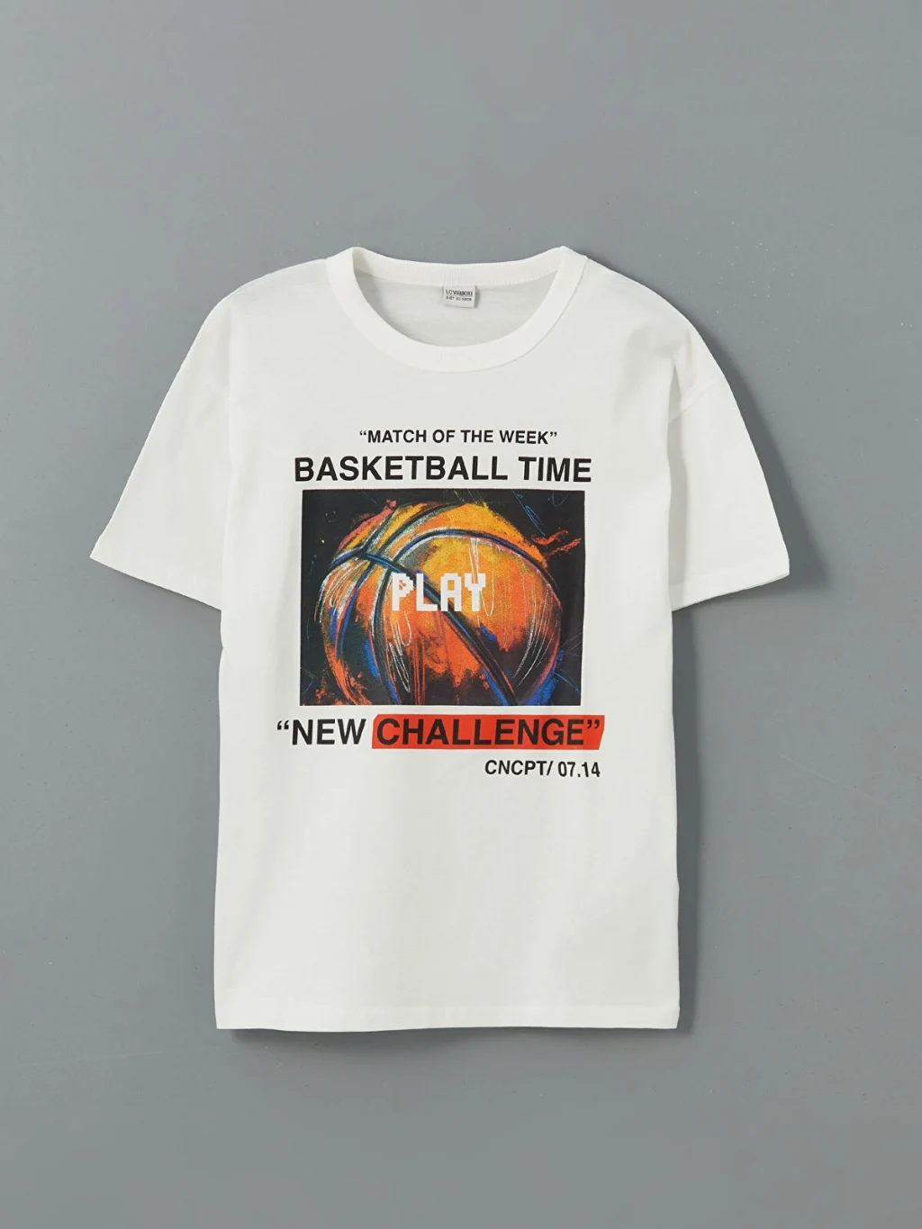 Bisiklet yaka ve kısa kollu erkek çocuk tişört, %100 pamuklu penye kumaştan üretilmiştir. Bol kalıplı model, ön yüzü baskılı tasarıma sahiptir.