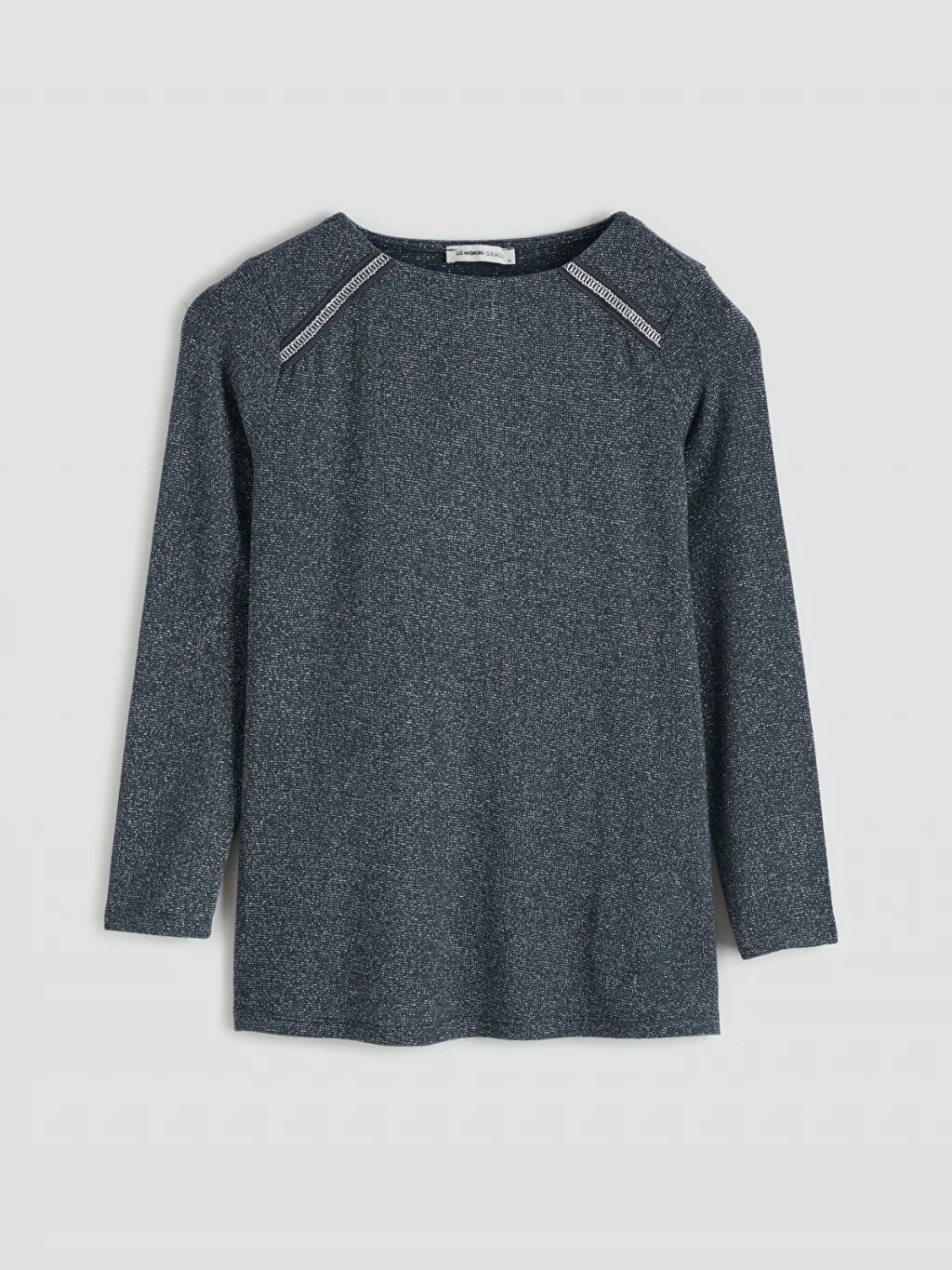 Bisiklet yaka, uzun kollu kadın tişört, ribana kumaştan üretilmiştir ve omuzlarında fermuar detayı bulunur.