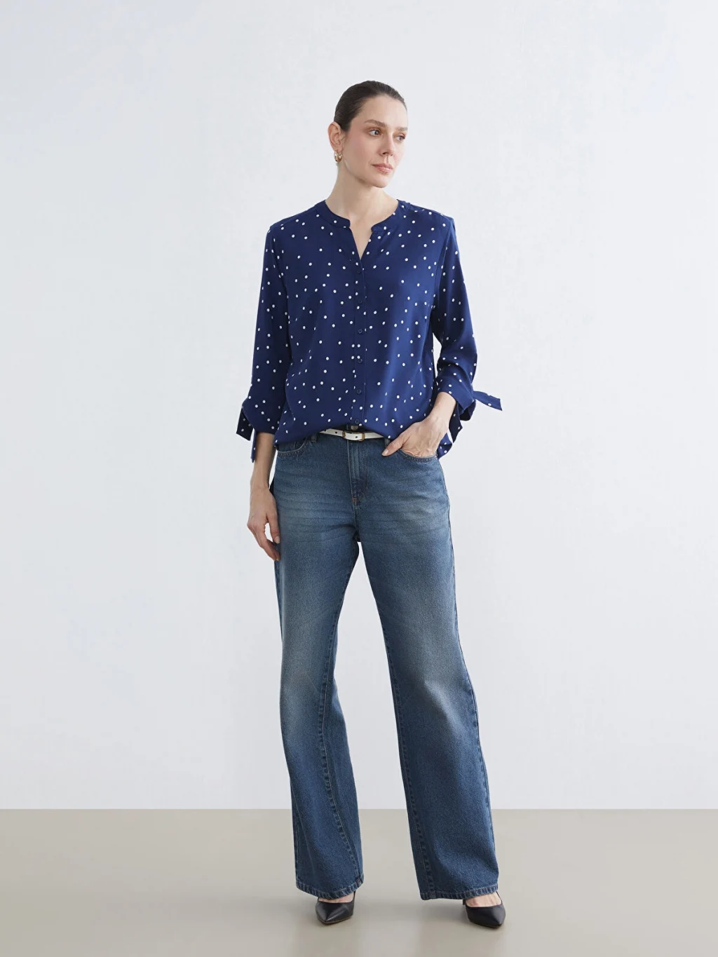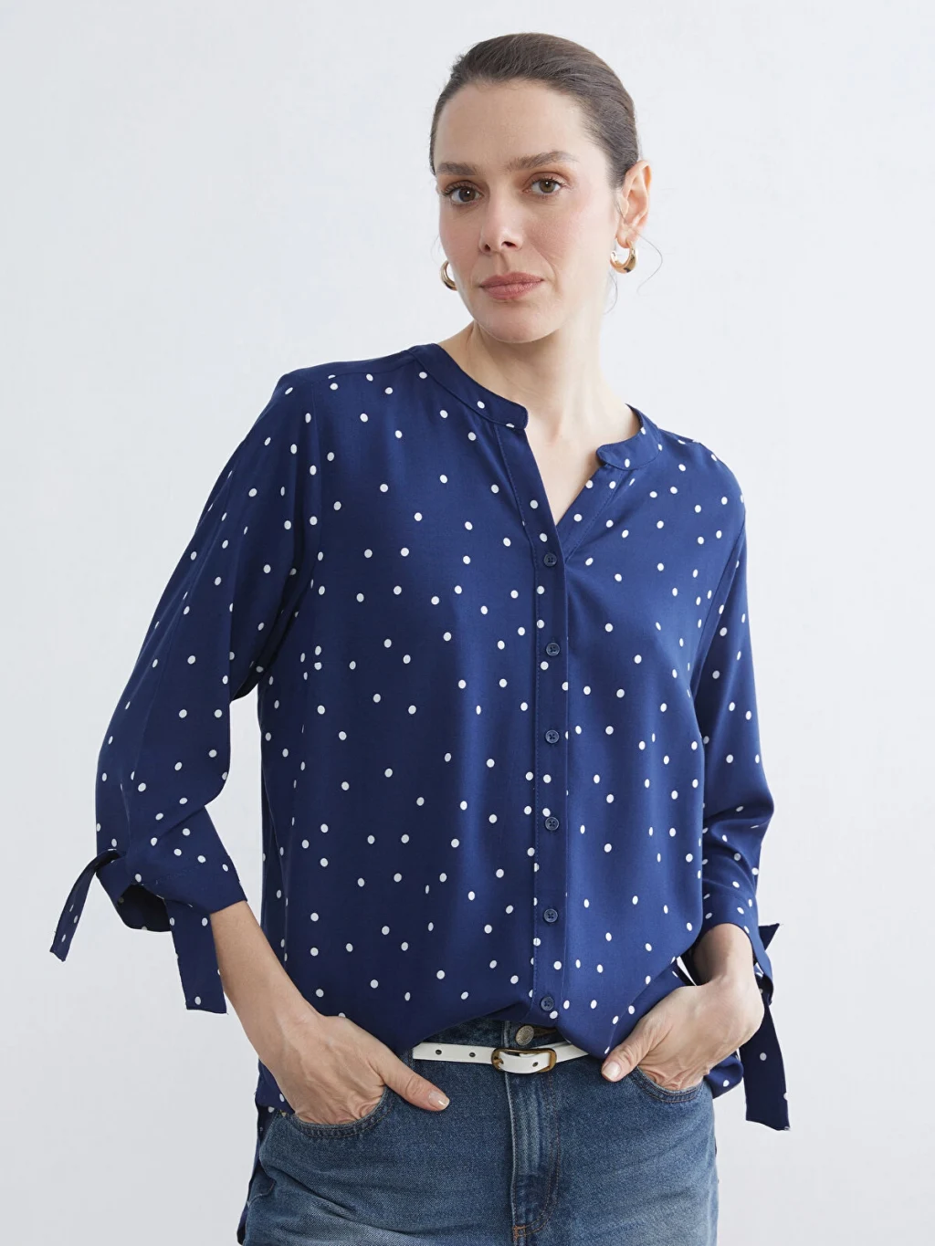 LCW Grace Lacivert Kaçık Yaka Puantiyeli Bluz