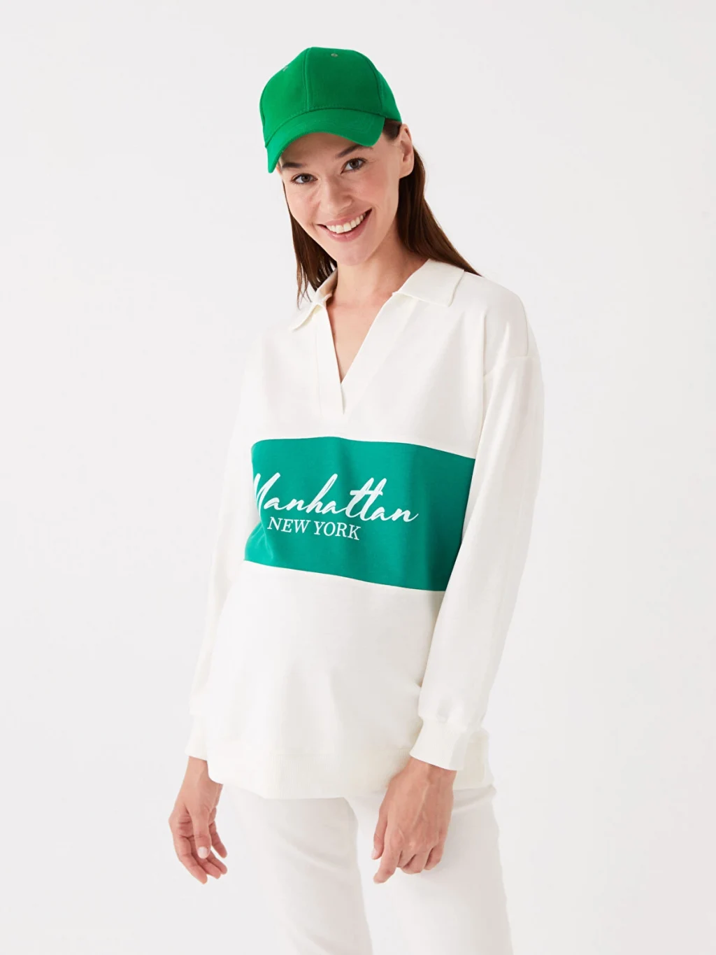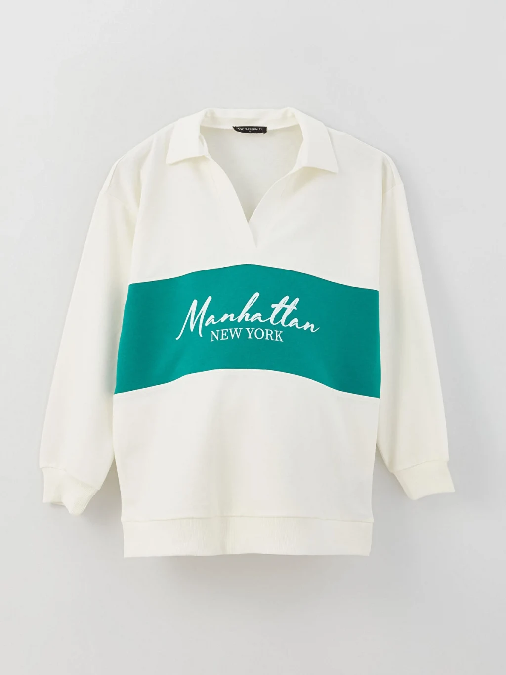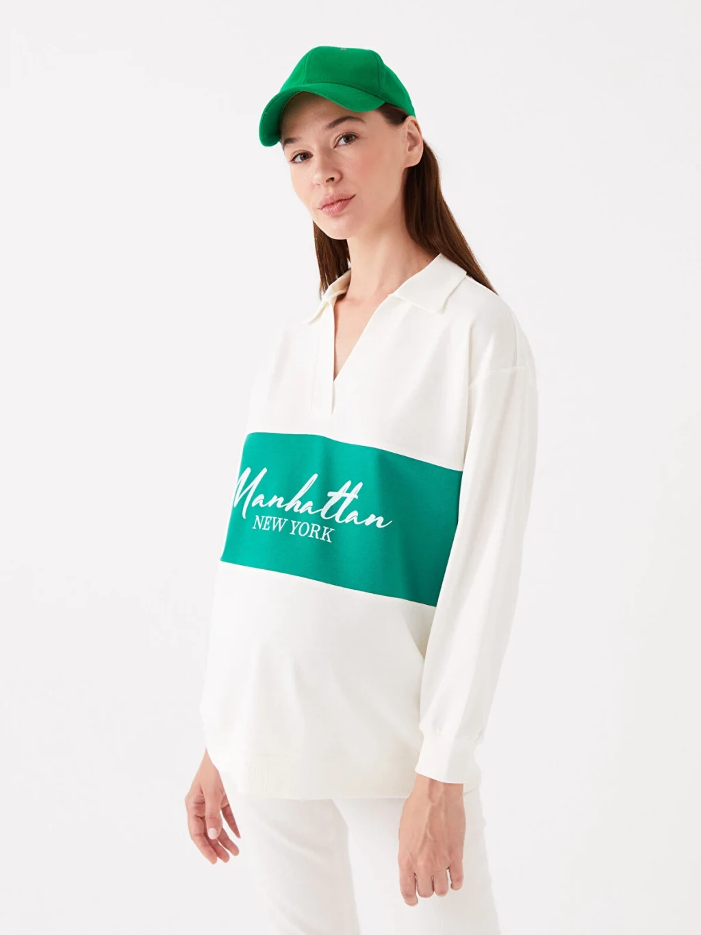 Polo yaka yazı baskılı hamile sweatshirt, 2 iplik kumaştan üretilmiştir ve kaliteli bir yapıya sahiptir. Hamilelik döneminde rahatlık sağlamak amacıyla oversize kesim olarak tasarlanmıştır. Şıklığı ve konforu bir araya getiren ideal bir seçenektir. Hamilelikte ve sonrasında da rahatça kullanabilirsiniz.