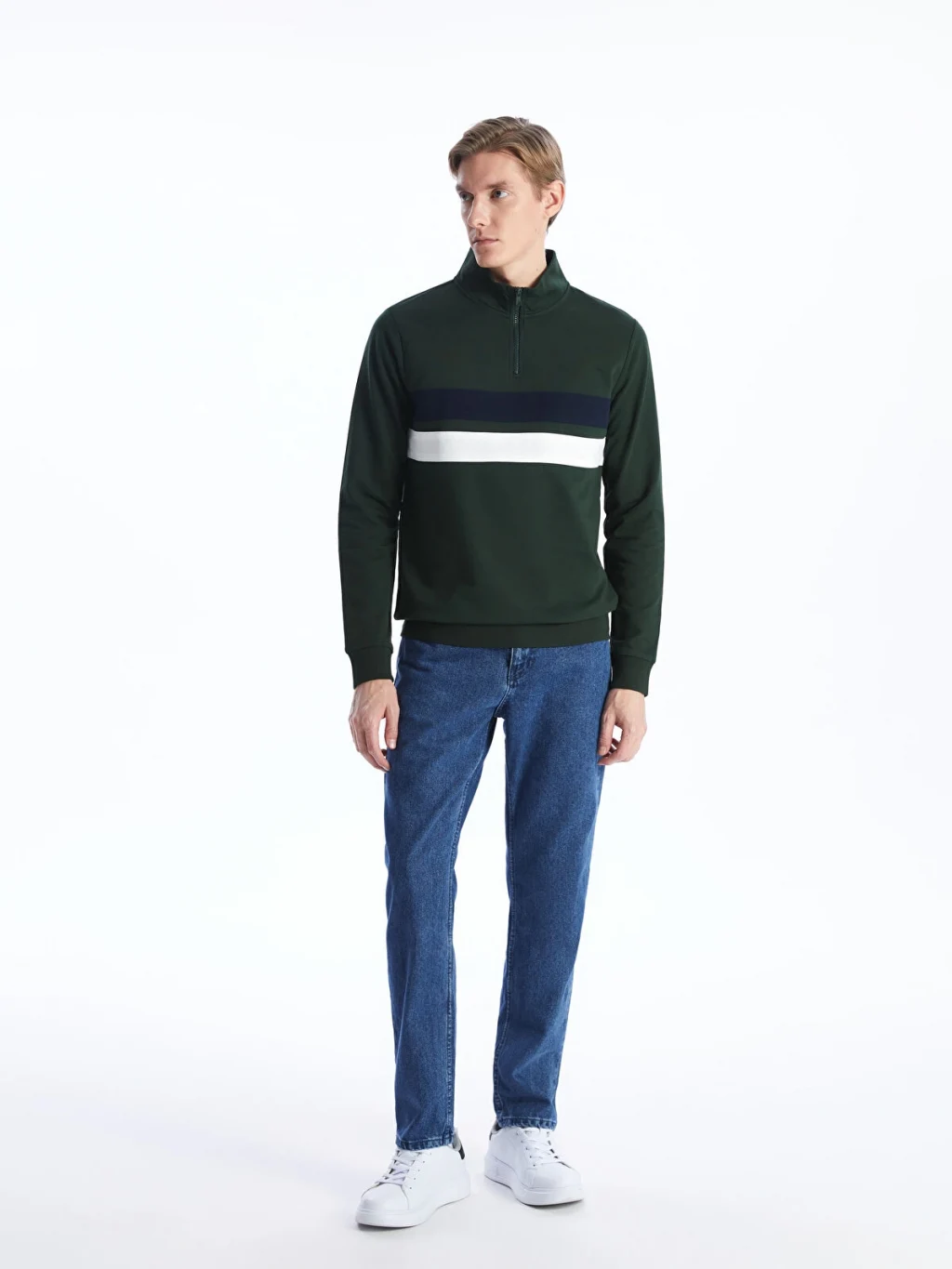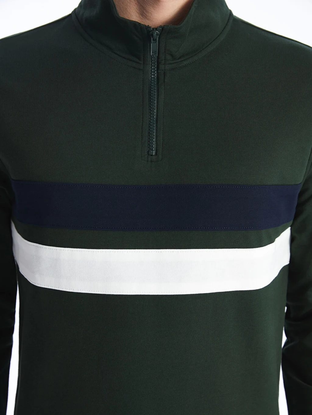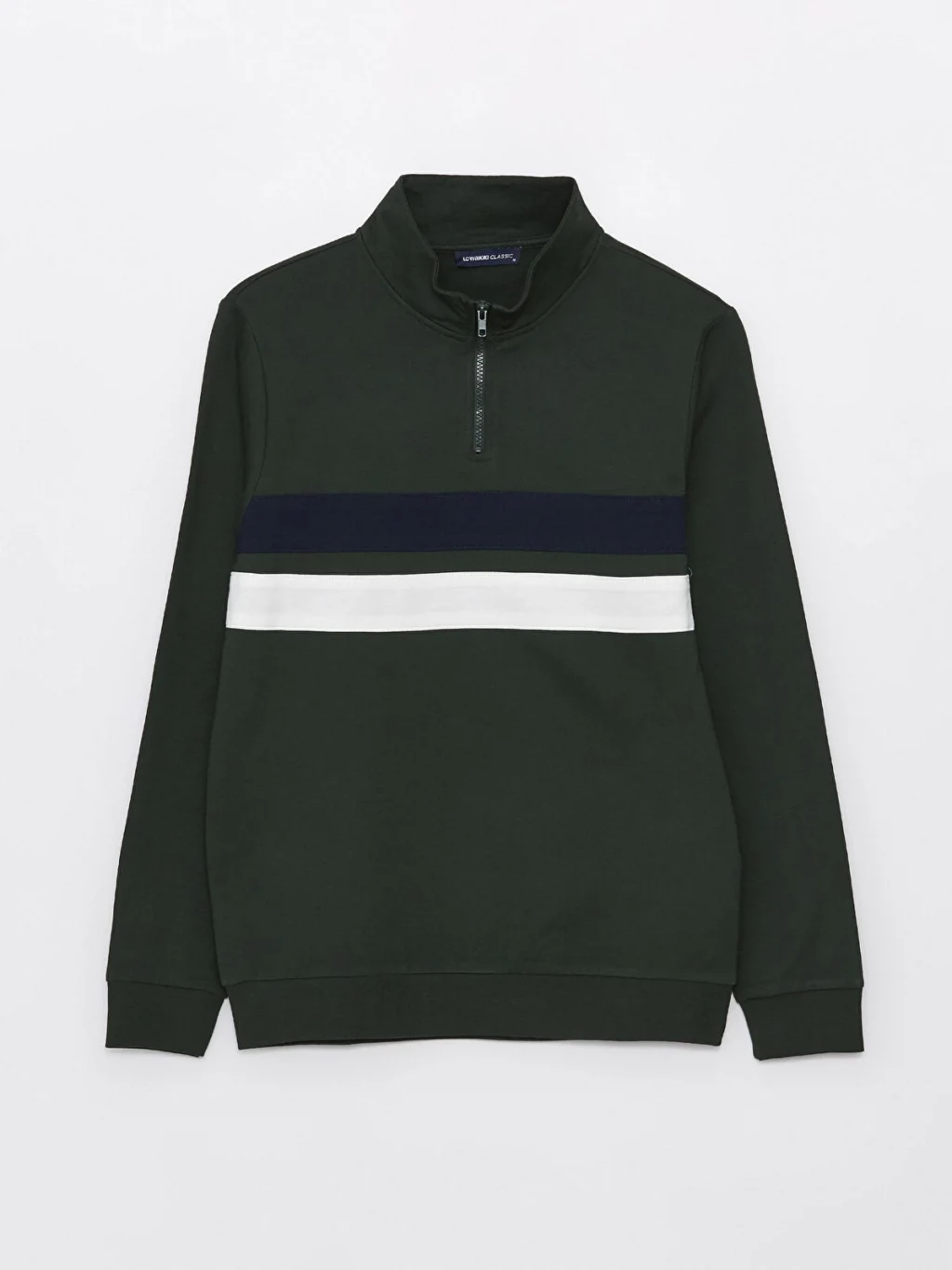 LCWAIKIKI Classic YEŞİL Dik Yaka Uzun Kollu Renk Bloklu Erkek Sweatshirt