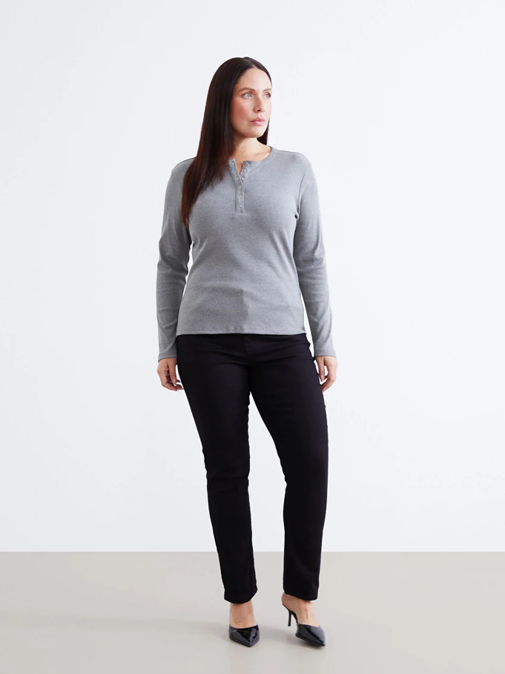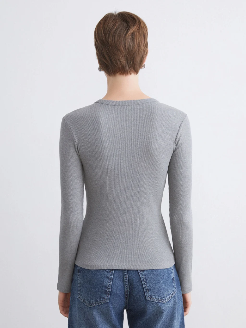 Bisiklet yaka kadın body, ribana kumaştan üretilmiştir. Vücuda oturan tasarıma sahiptir.