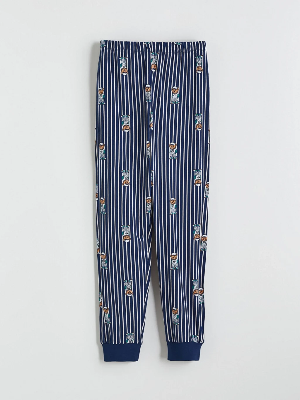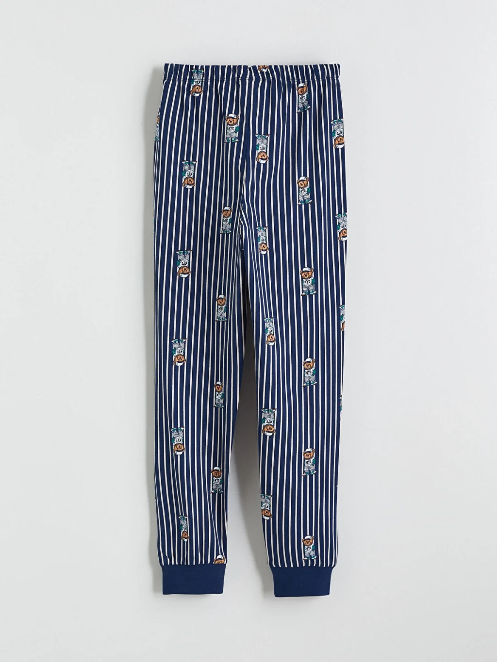 Erkek çocuk pijama takımı, baskılı, bisiklet yaka, uzun kollu üst ve çizgili, desenli, paçası ribanalı alttan oluşur. %100 pamukludur.