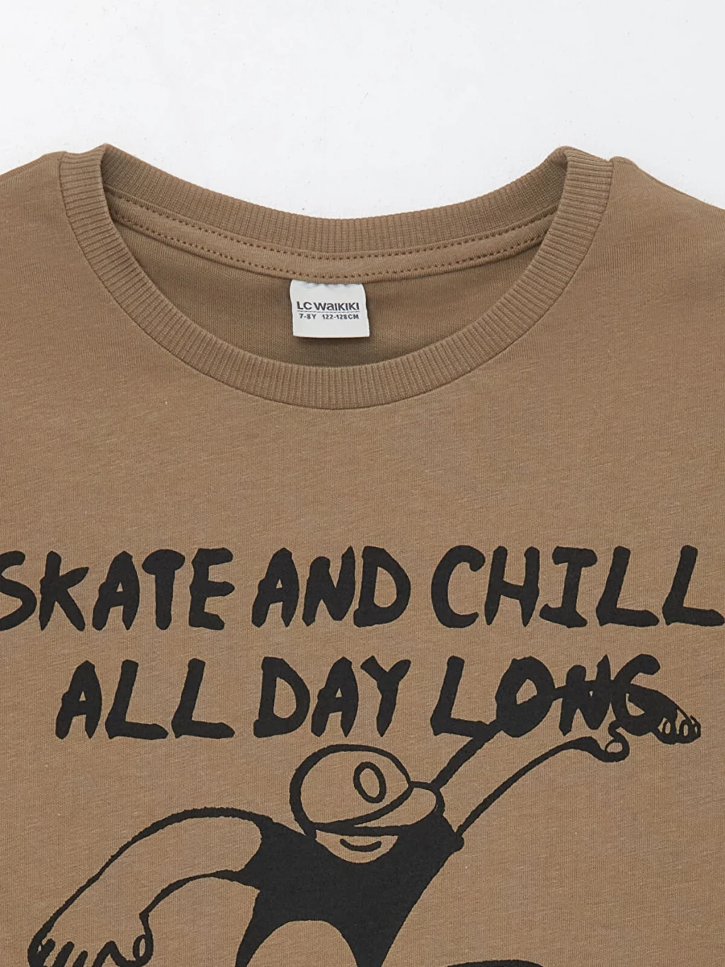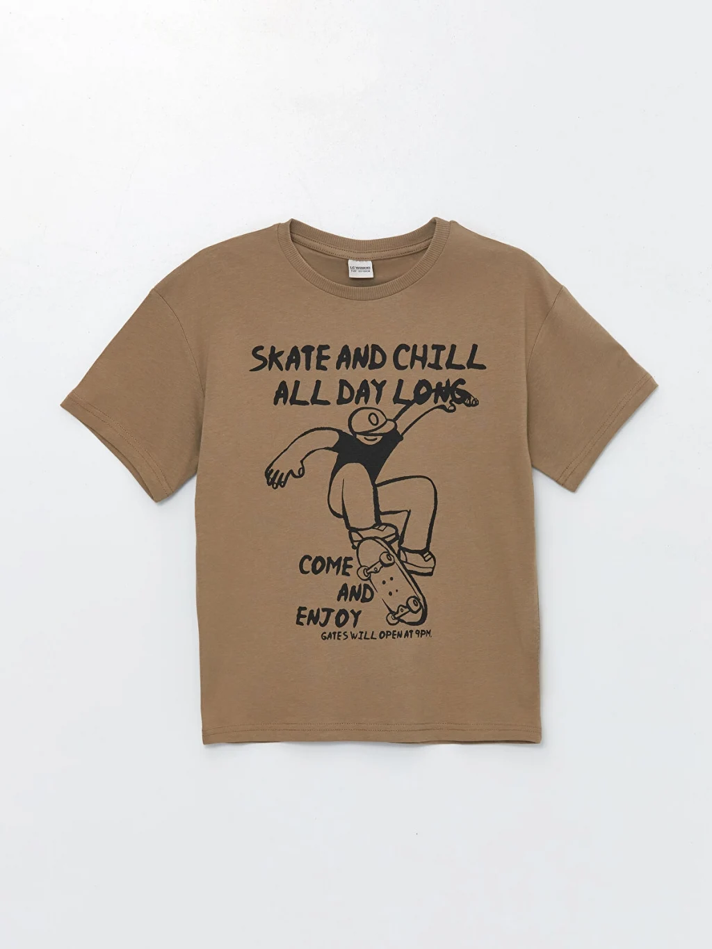 Bisiklet yaka ve kısa kollu erkek çocuk tişört, %100 pamuklu penye kumaştan üretilmiştir. Rahat kalıplı tişörtün ön yüzü baskılıdır.