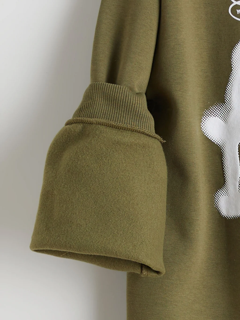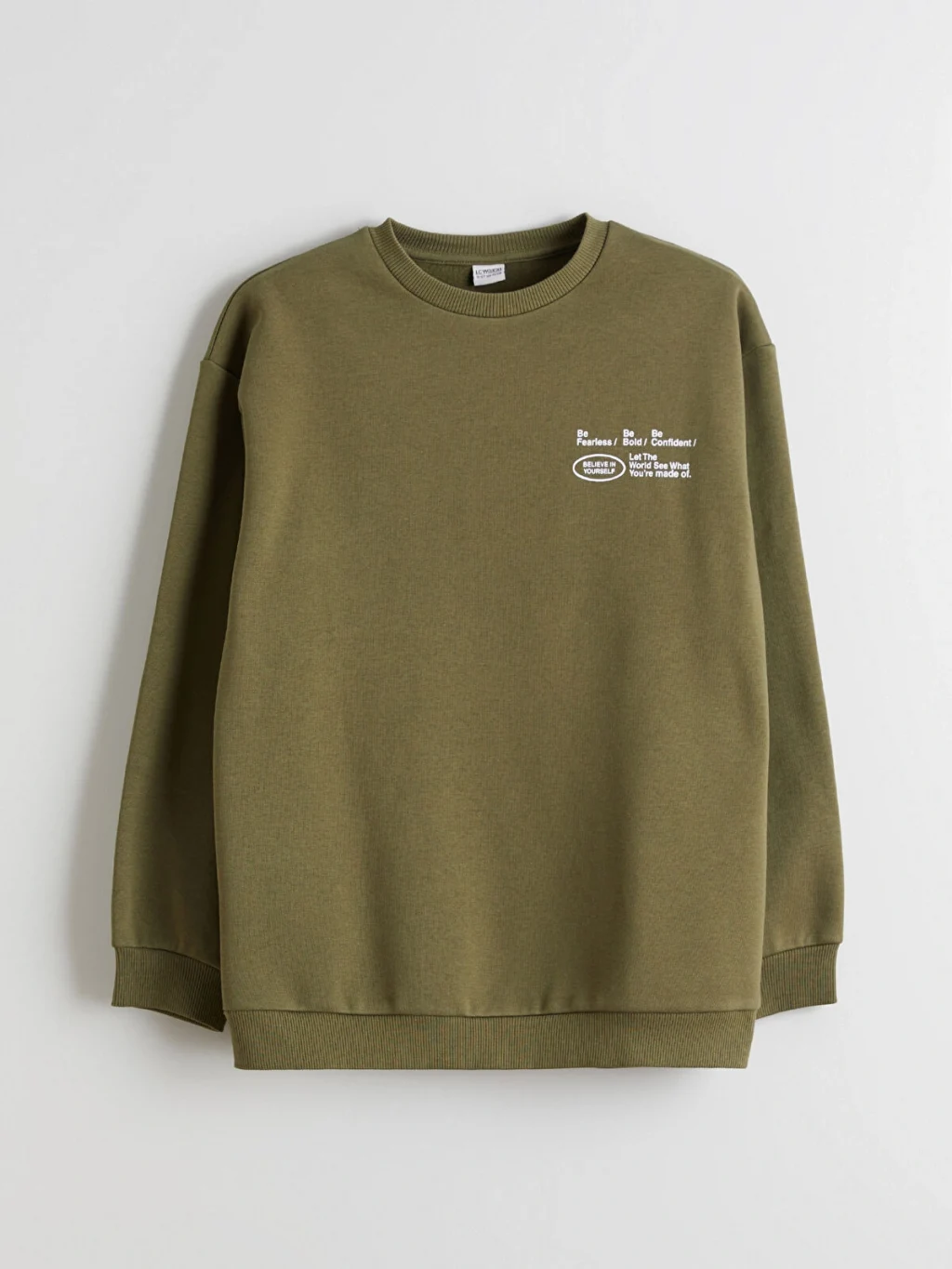 Önü ve arkası baskılı erkek çocuk sweatshirt, 3 iplik şardonlu kumaştan üretilmiştir. Manşetleri ve etek ucu ribanalıdır.