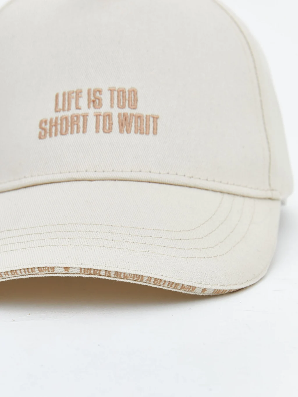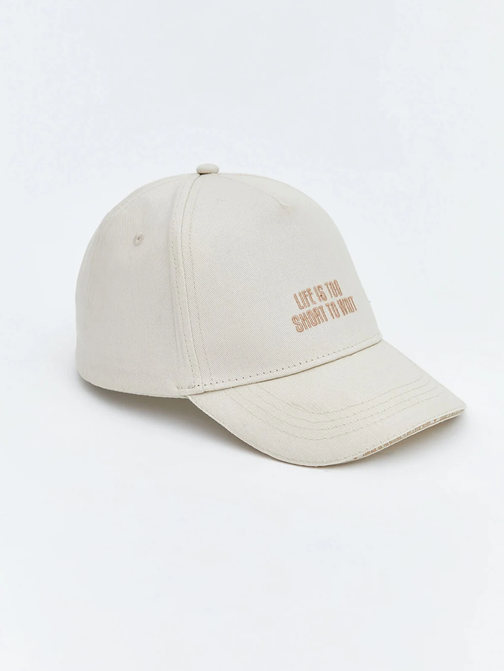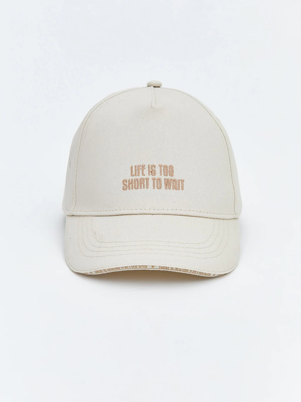 LCW ACCESSORIES Ekru Yazı Nakışlı Kız Çocuk Kep Şapka